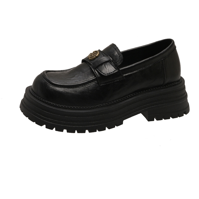 厚底乐福鞋女2025新款春季复古圆头粗跟单鞋英伦风一脚蹬小皮鞋