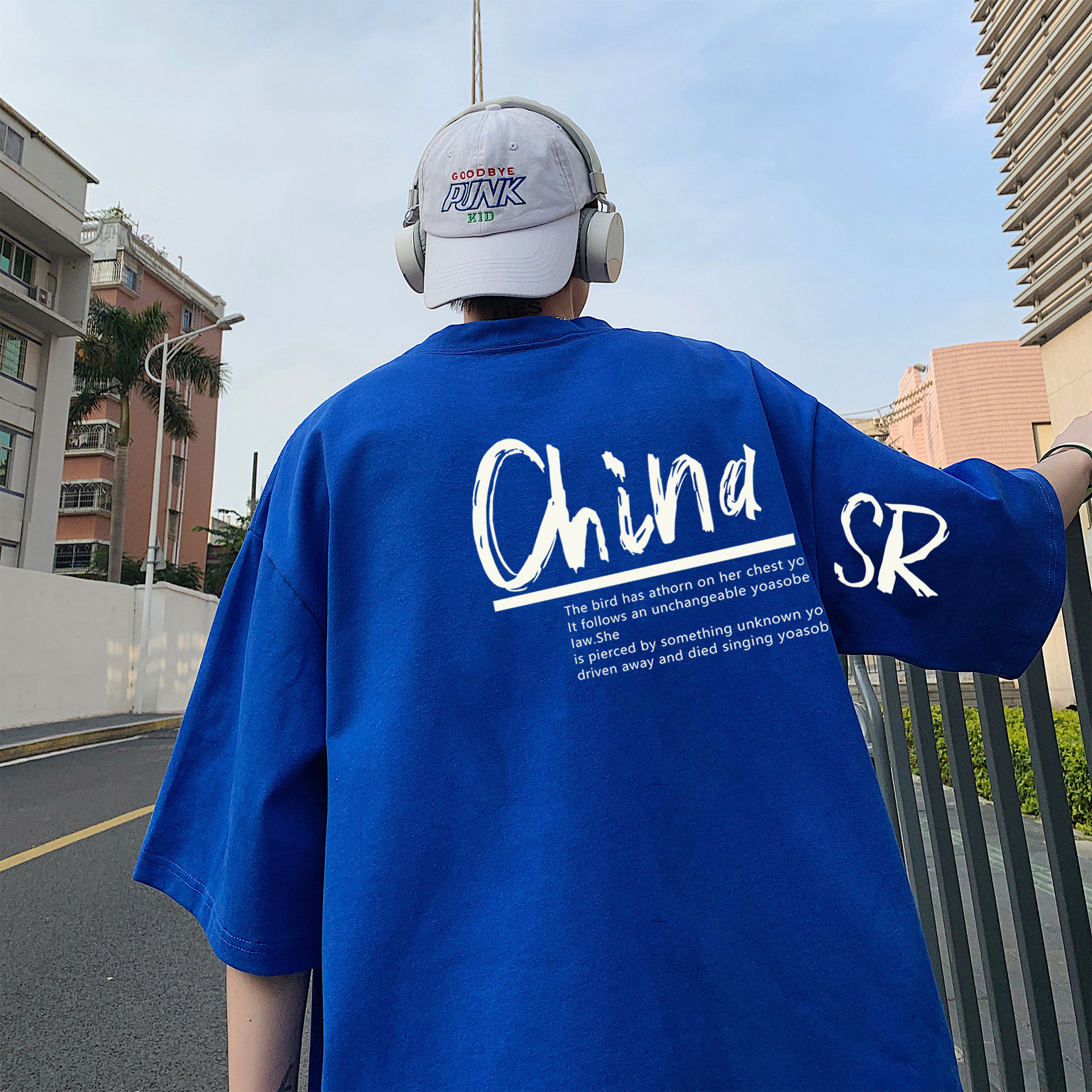 重磅纯棉短袖T恤宽松男夏季新款大码体恤衫潮流字母印花