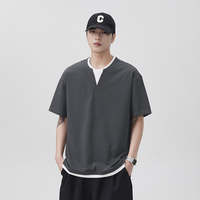 假两件美式复古短袖T恤男夏季2025新款ins潮牌亨利衫男装体恤