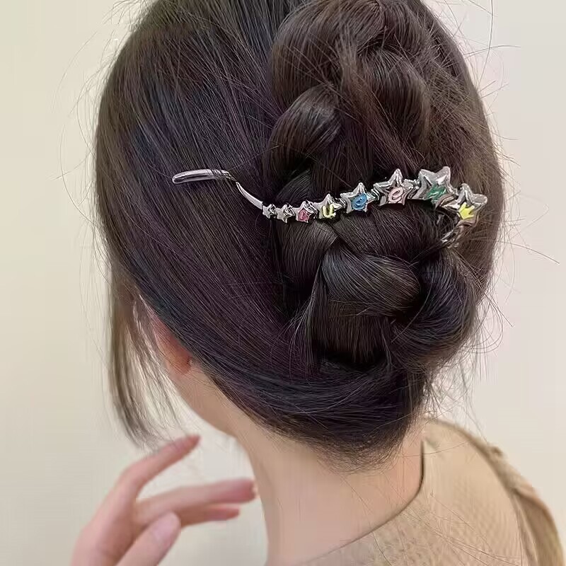 彩色多巴胺水钻字母发夹女后脑勺盘发一字夹高级感扭扭夹发卡头饰