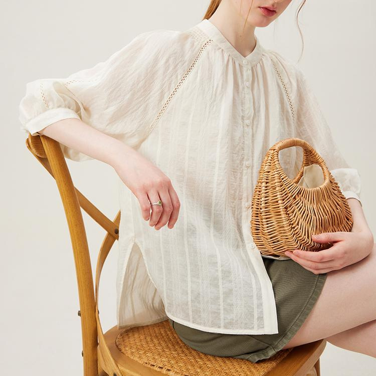七分袖气质立领衬衫女新款慵懒风宽松上衣