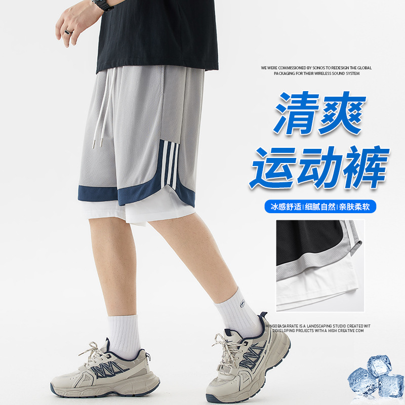 优质假两件美式篮球短裤男夏季运动冰丝速干训练健身跑步五分裤子