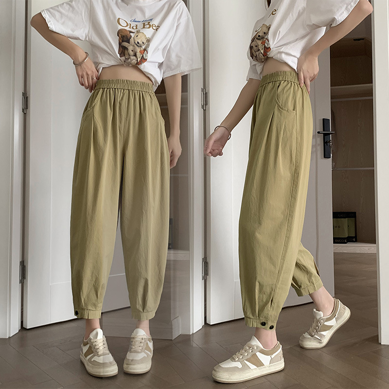 洗水棉松紧腰休闲裤女新款韩版宽松哈伦裤九分老爹裤女