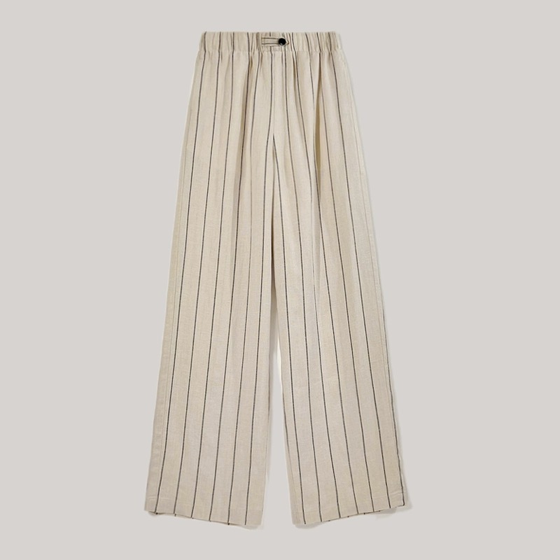 亚麻休闲裤女新款夏季薄款裤子宽松大码显瘦条纹直筒阔腿裤
