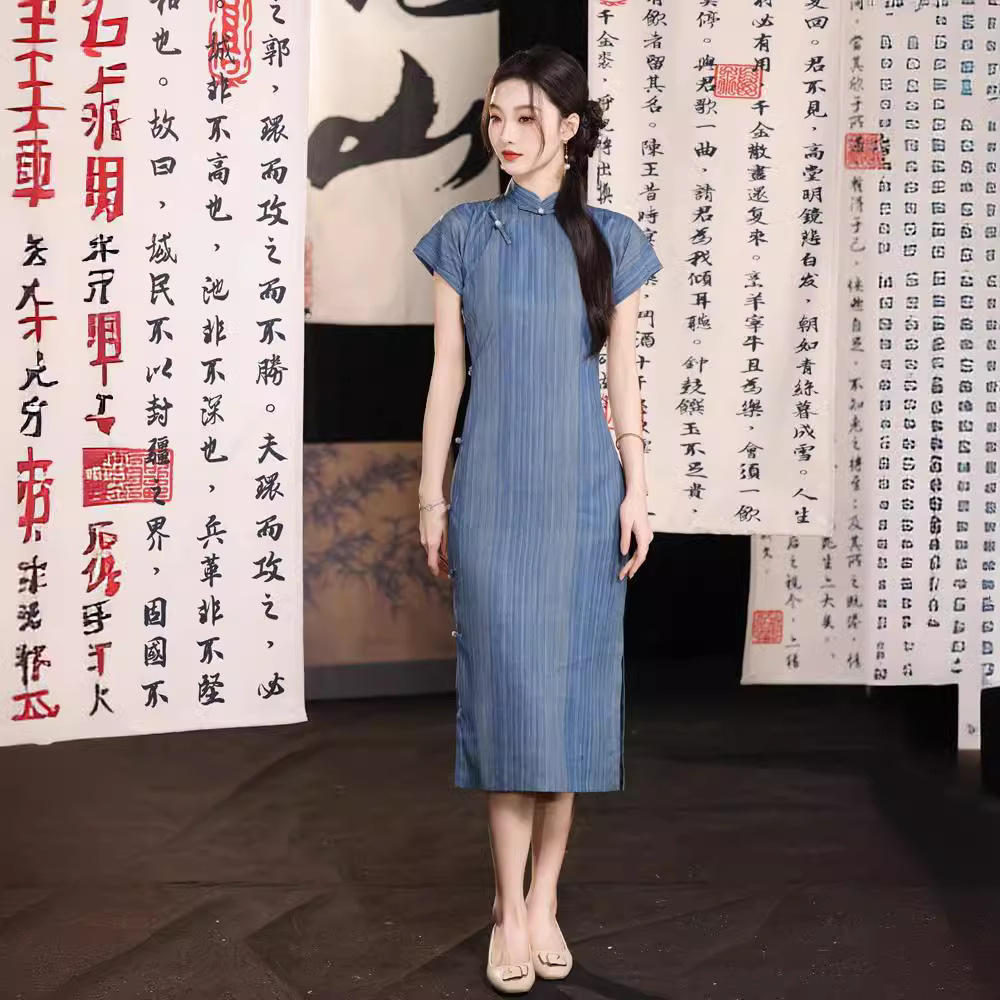 新中式民国风短袖开襟改良旗袍女夏季气质代官山连衣裙长裙