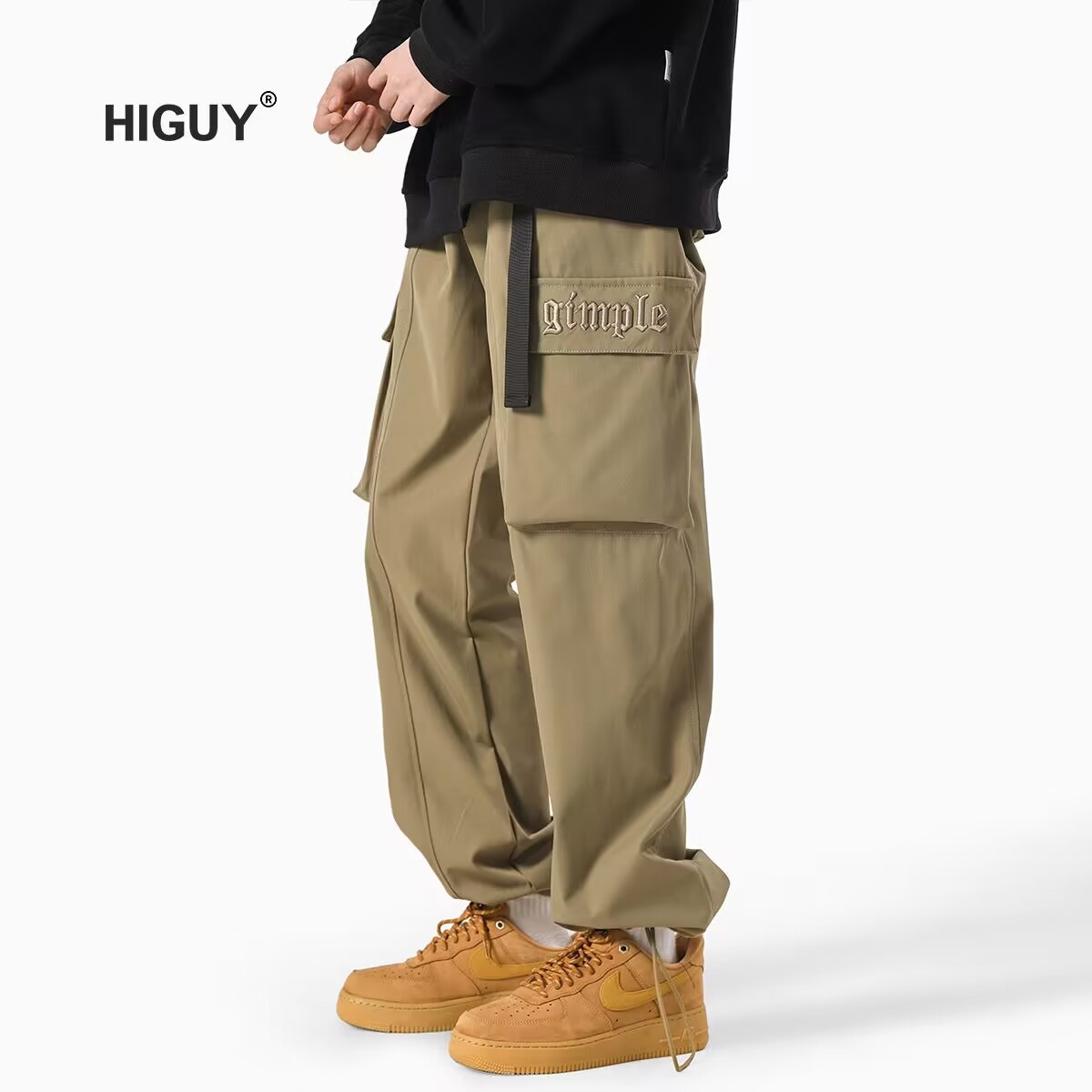 潮牌机能工装裤男春季美式复古抽绳束脚裤子潮牌宽松直筒休闲长裤