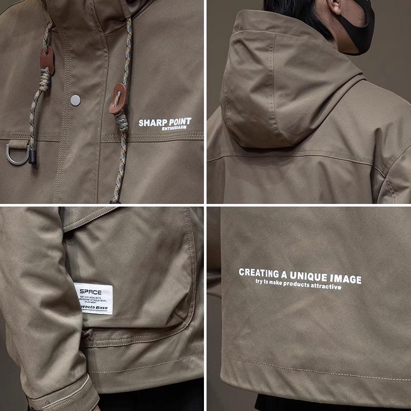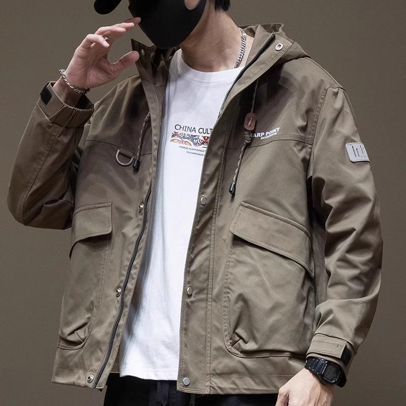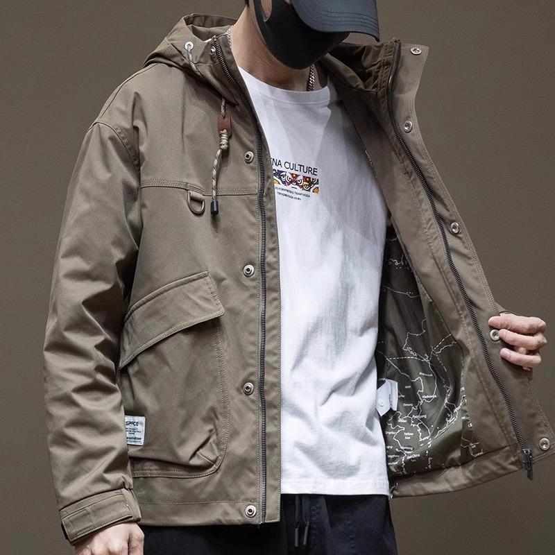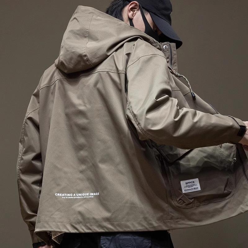 大码工装外套男冬季潮牌宽松休闲冲锋衣多口袋百搭夹克衫