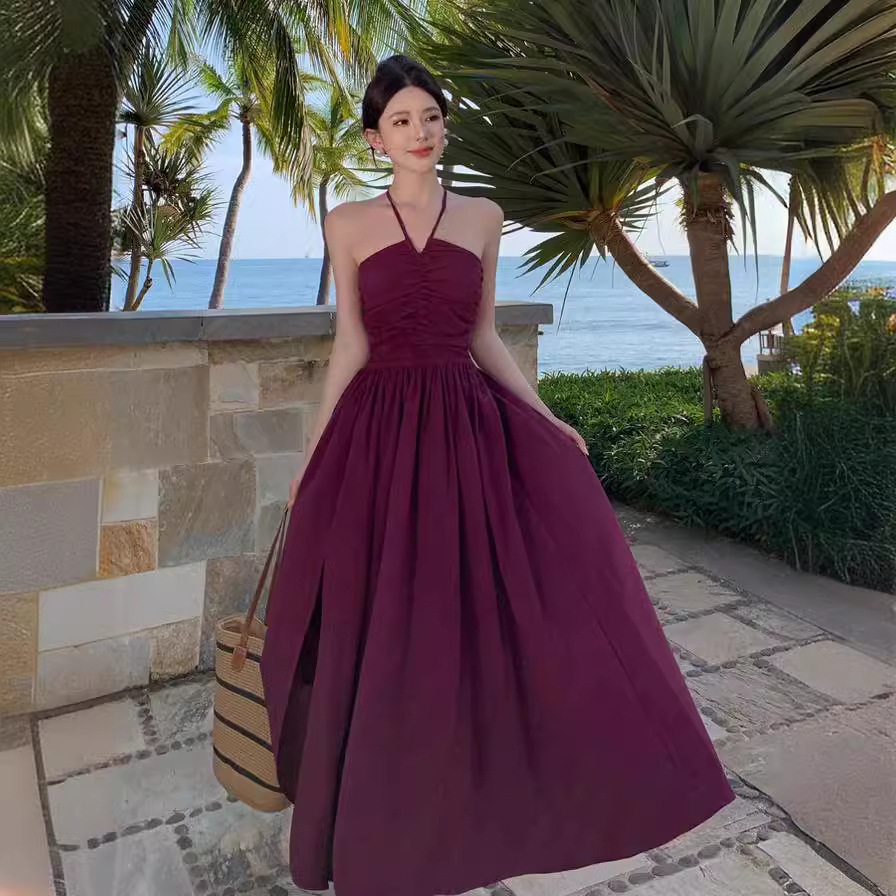 酒窝法式无袖抹胸连衣裙女夏季修身显瘦露背长裙
