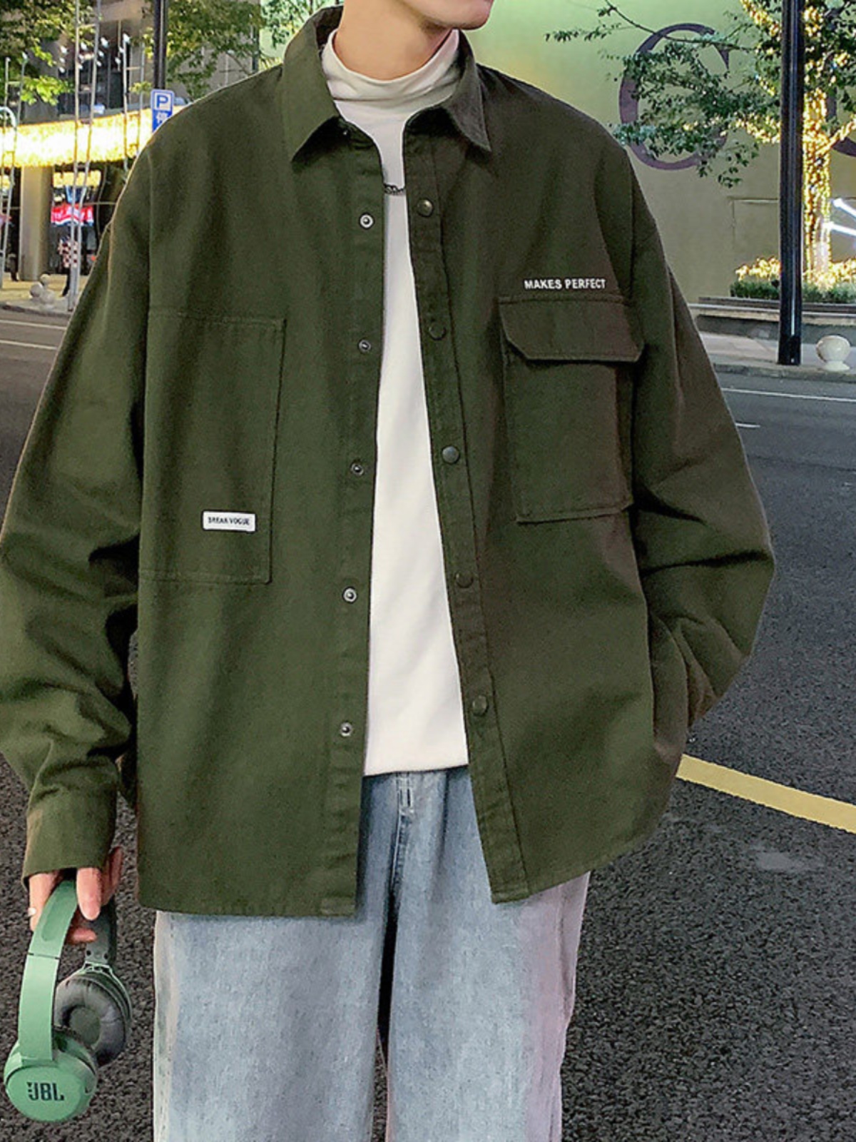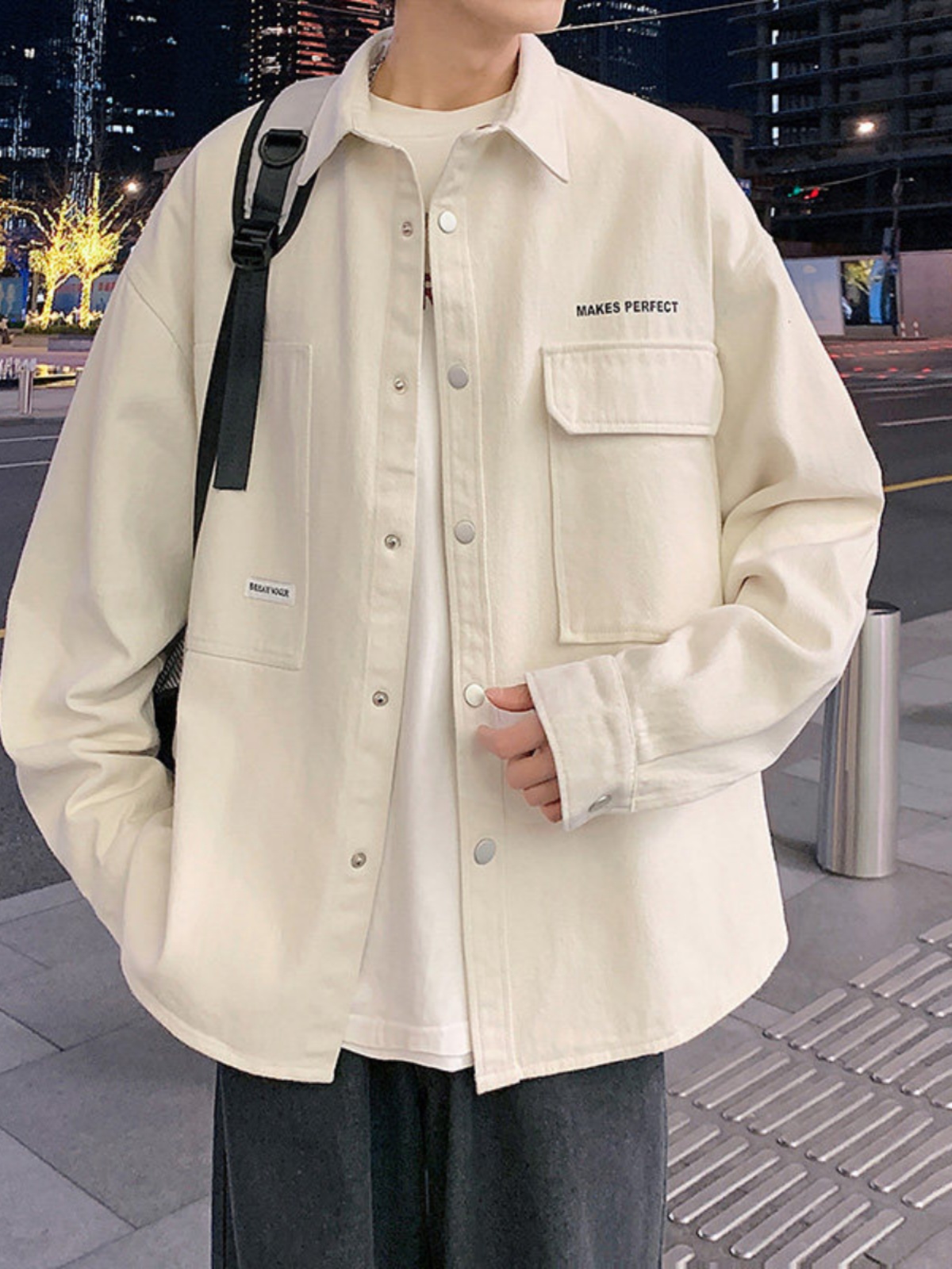 工装长袖衬衫男新款春秋季宽松大码开衫外套青少年休闲夹克男