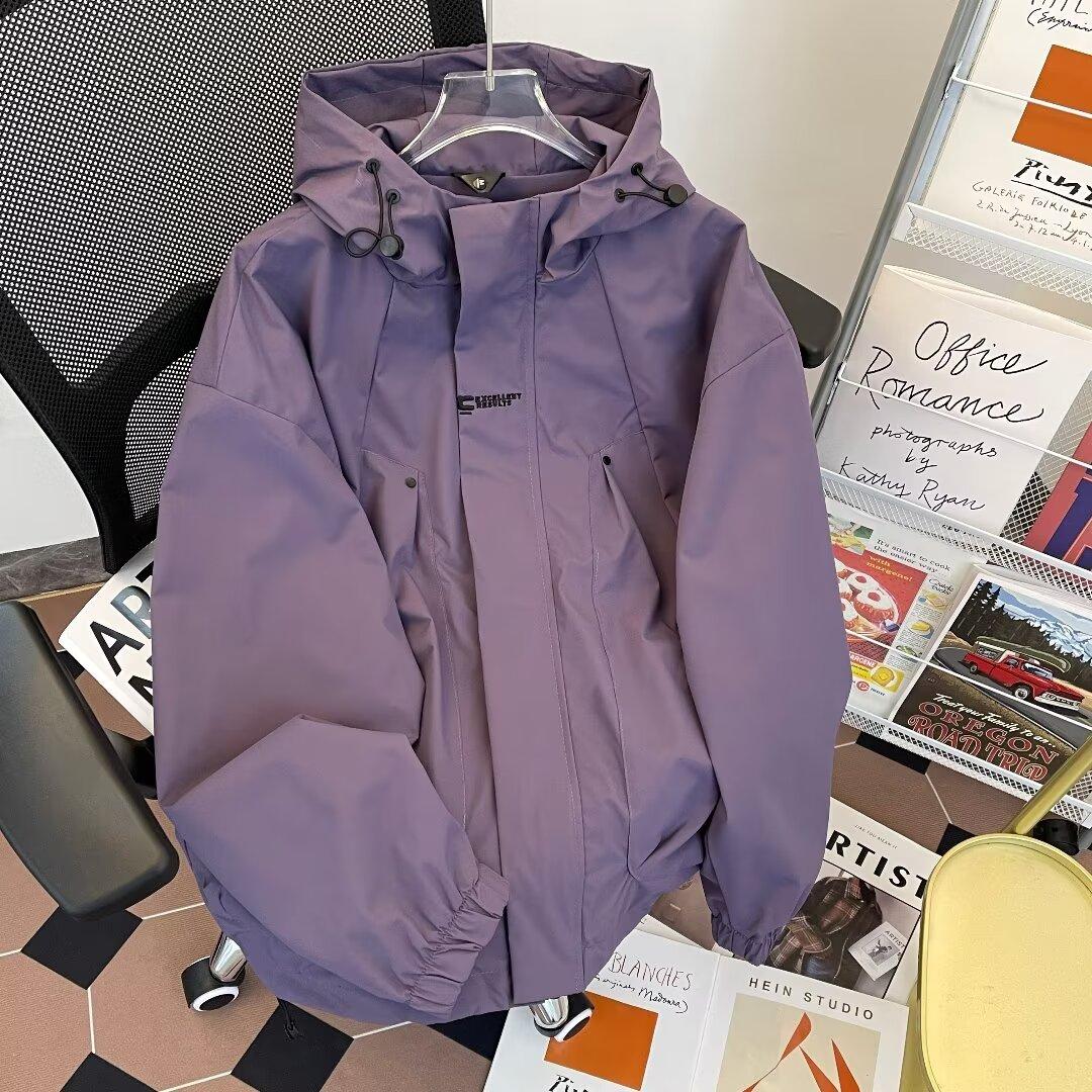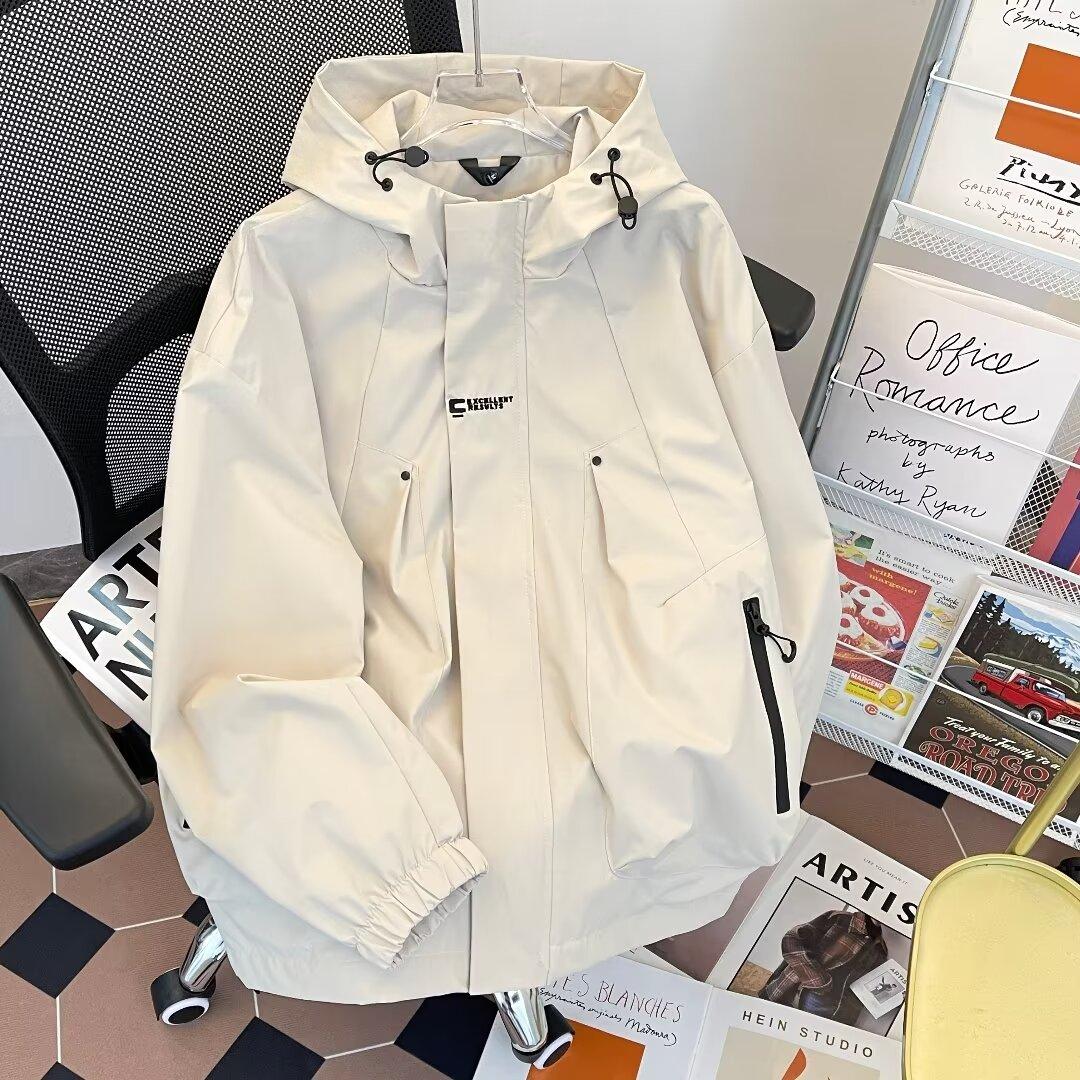 春季山系黑色冲锋衣外套男潮牌户外青少年宽松连帽运动登山服夹克