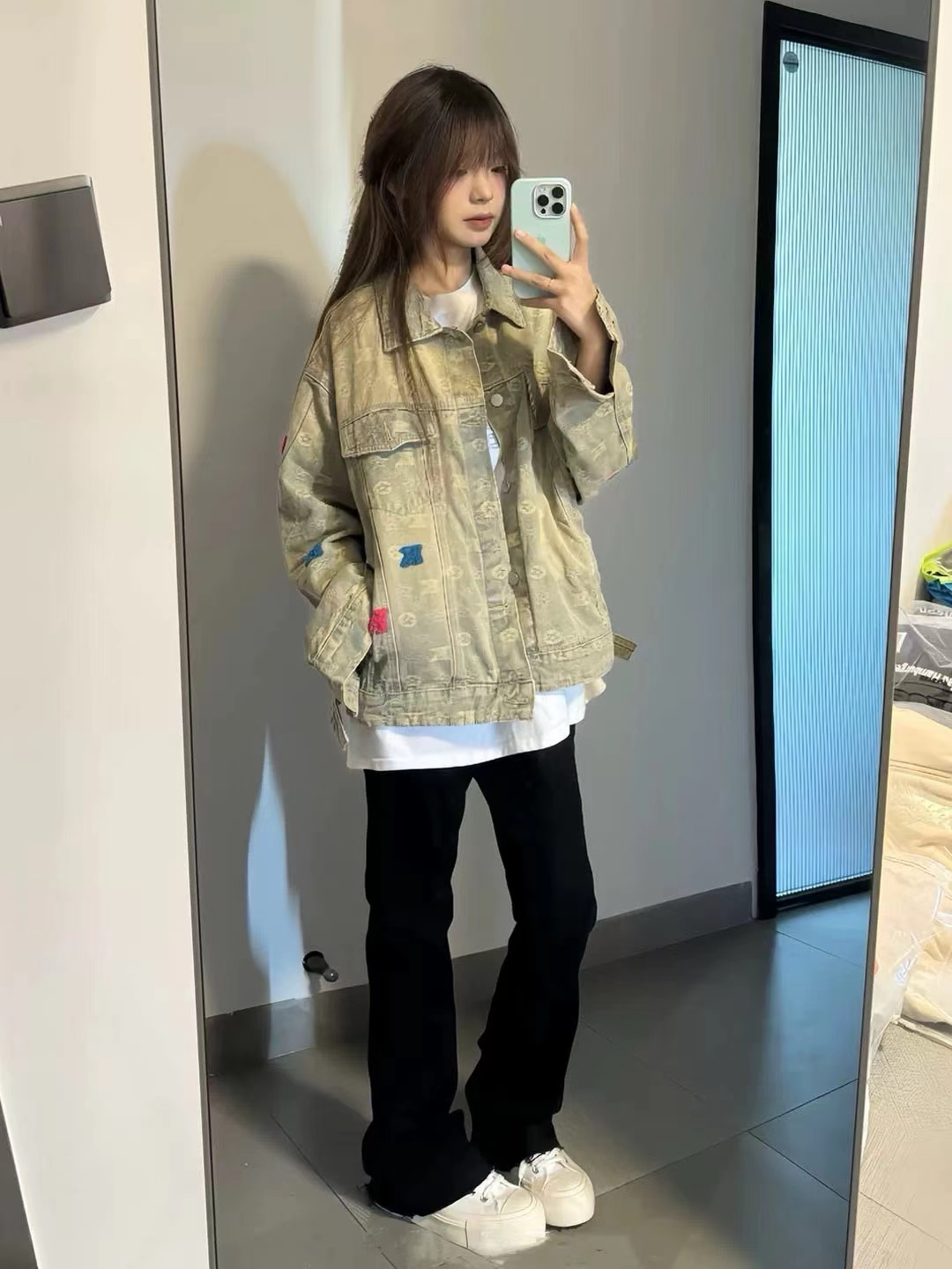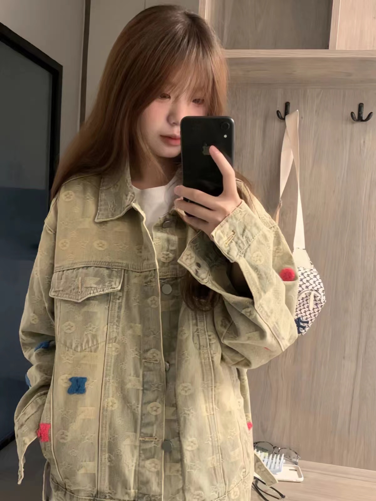 美式街头黄泥水洗做旧复古牛仔衣男女宽松潮牌夹克外套潮