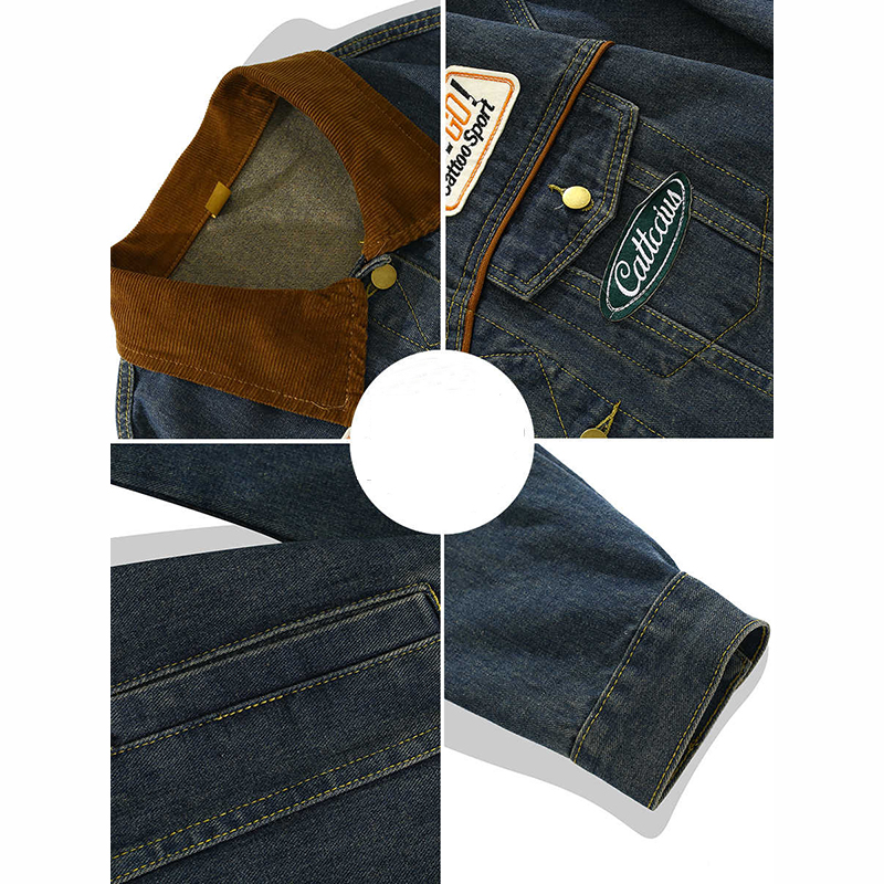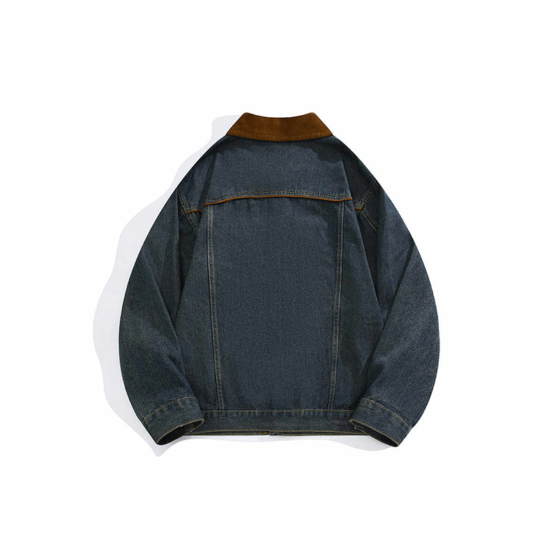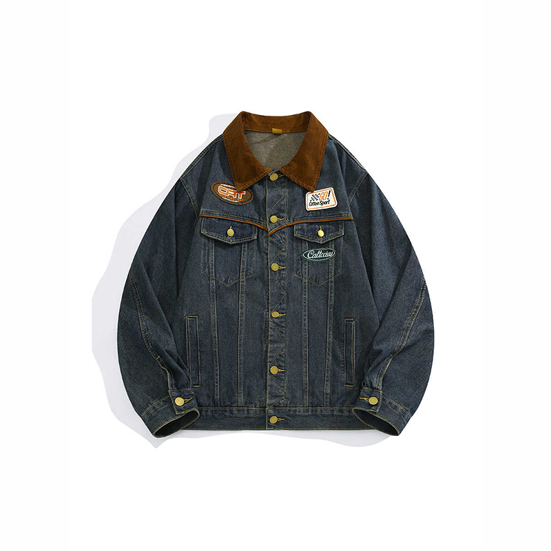 春秋新款美式复古牛仔外套男女机车贴标潮牌翻领高街夹克宽松上衣