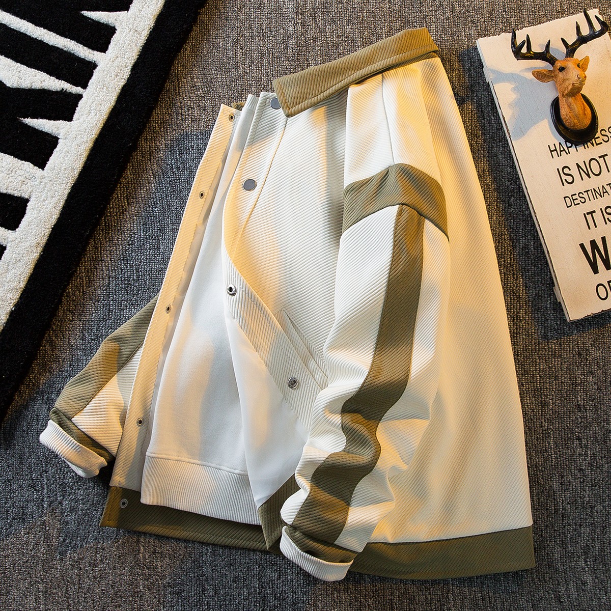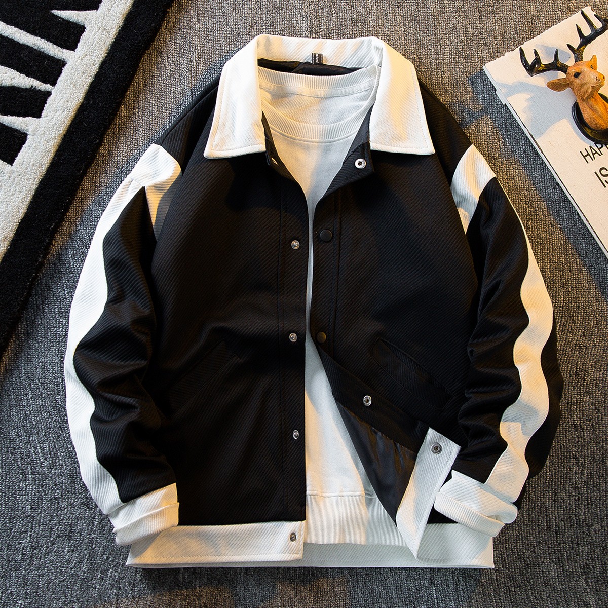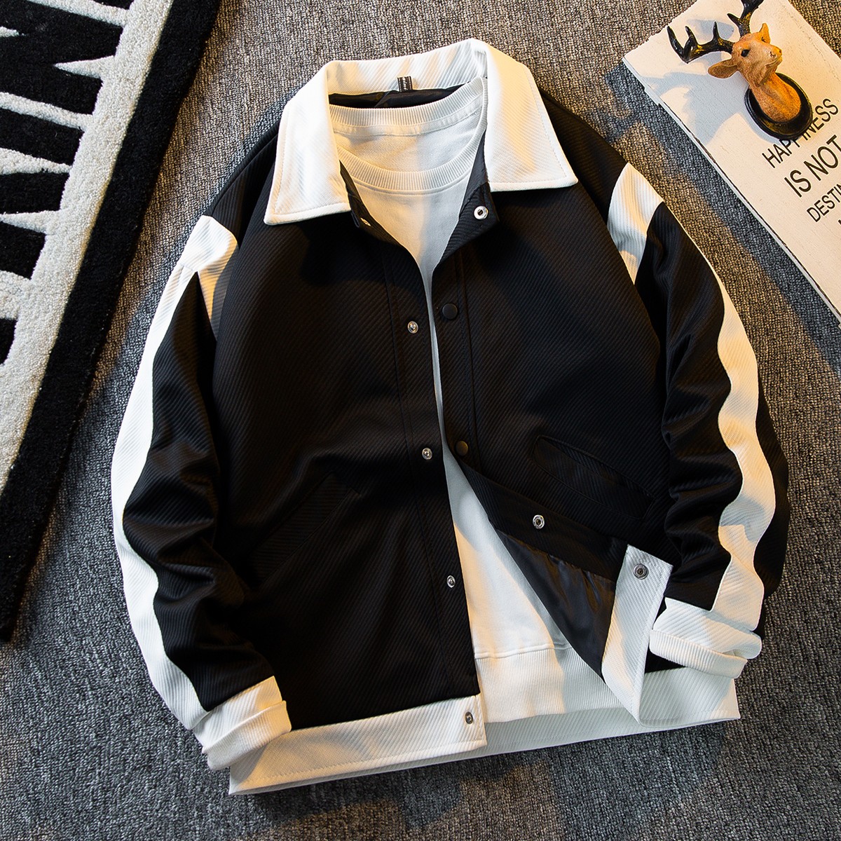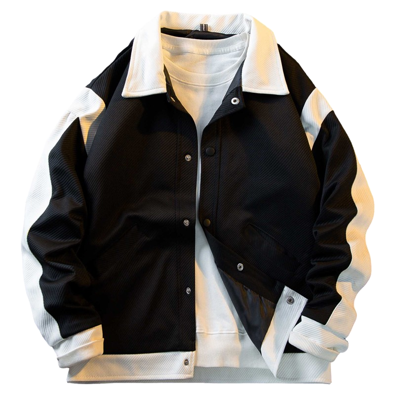日系拼接撞色翻领外套男春秋款潮牌高级感痞帅男士棒球服夹克