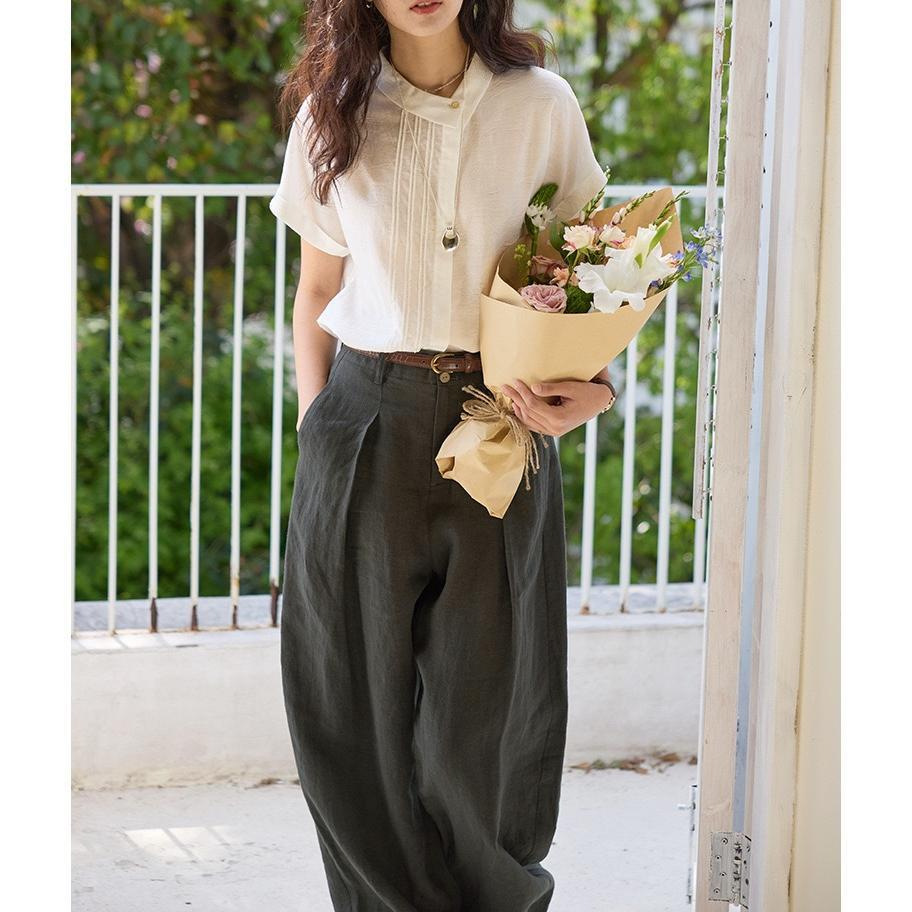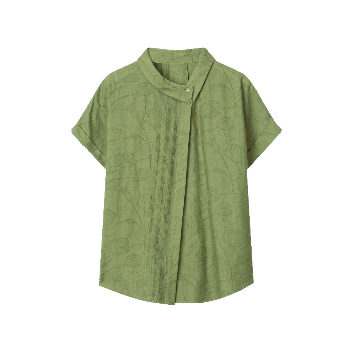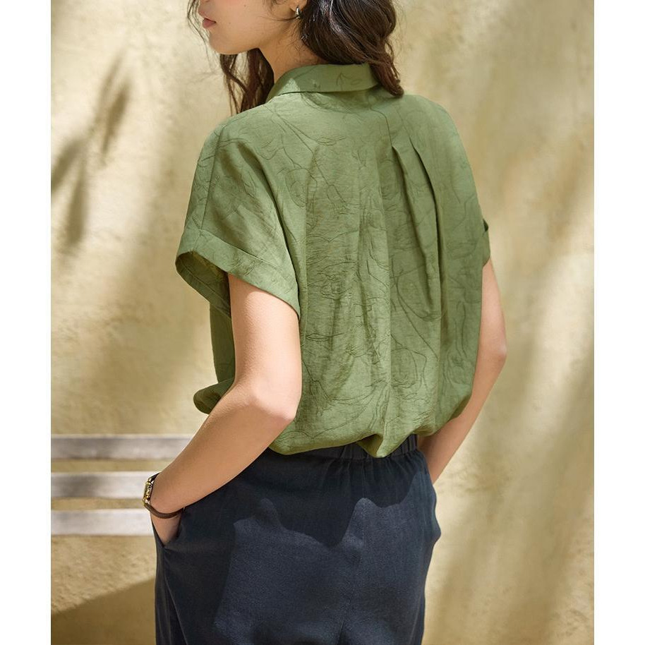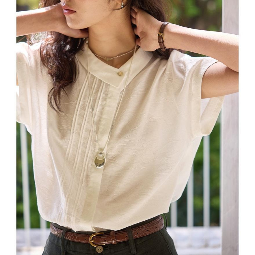solihgter 法式亚麻提花不对称翻领衬衫女夏季气质新款