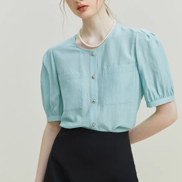 简约女士圆领短袖衬衫女夏季2025新款绝美上衣法式气质