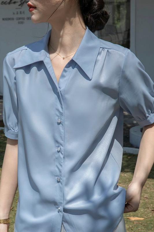 雪纺衬衫女夏设计感小众新款年法式上衣宽松慵懒风短袖衬衣