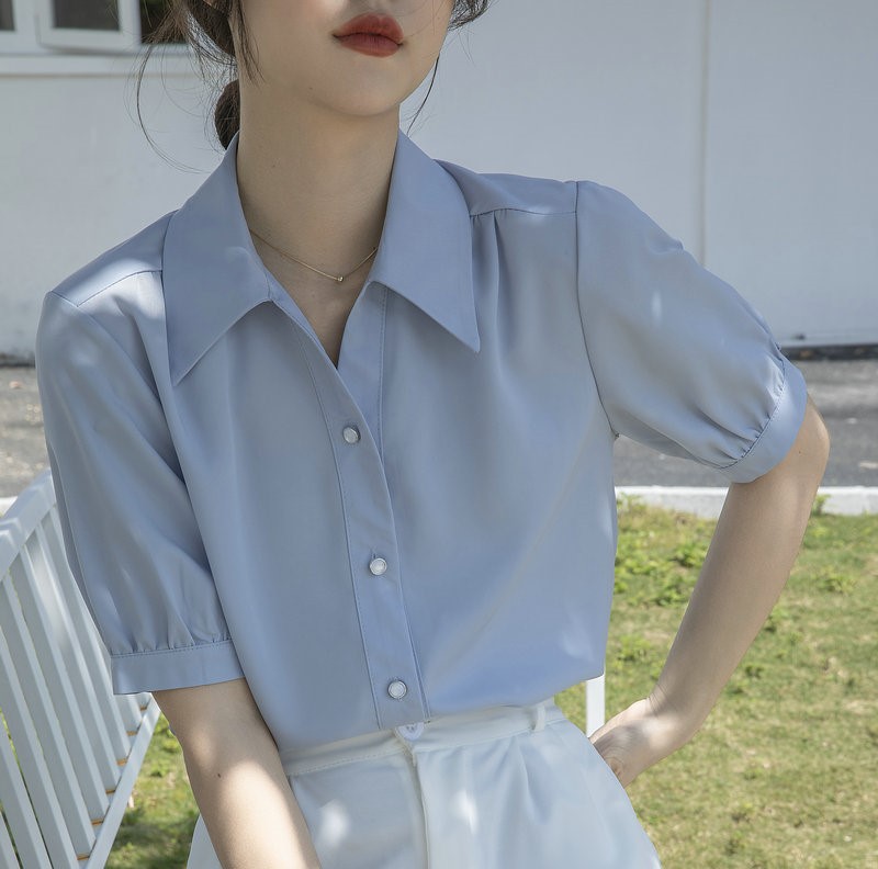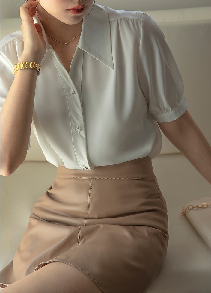 白色职业短袖衬衫女夏季新款正装面试衬衣