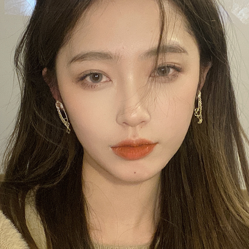 个性创意金属镶钻回形针链条流苏耳环 ins冷淡风网红百搭耳钉耳饰