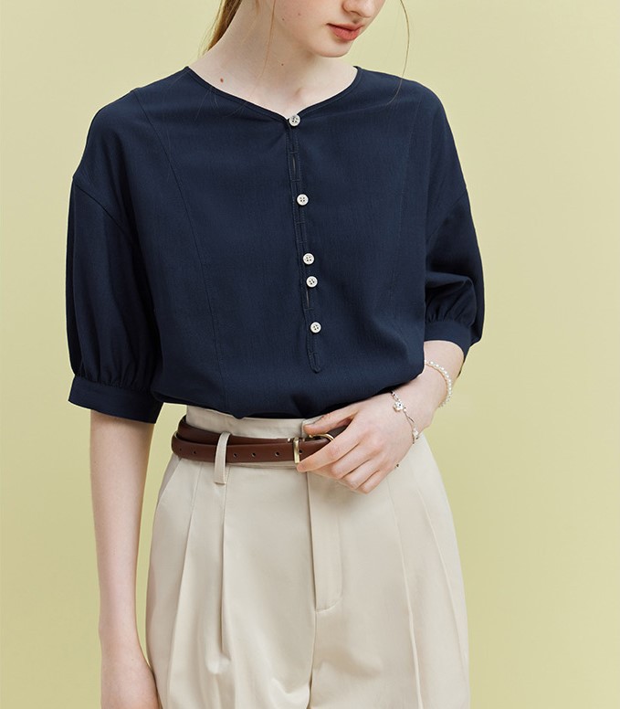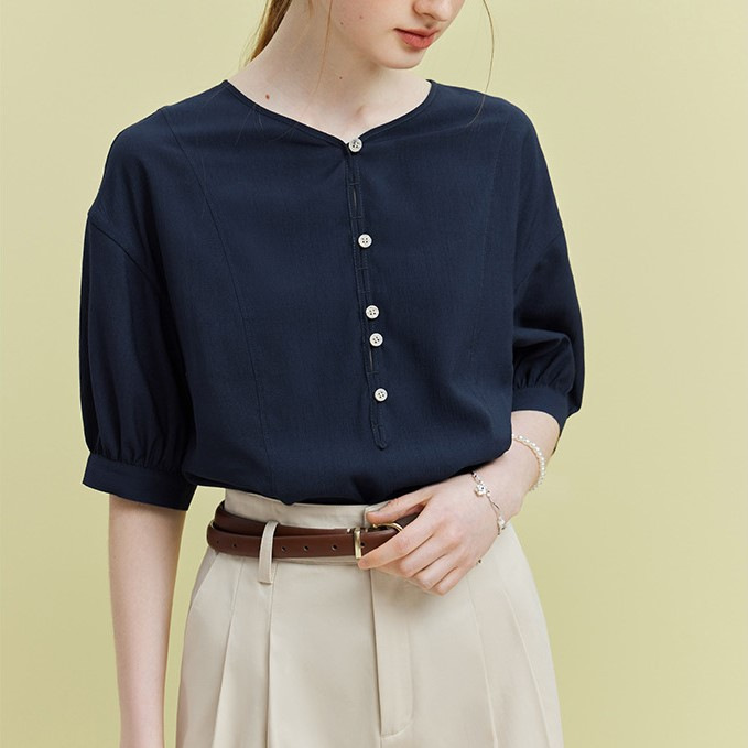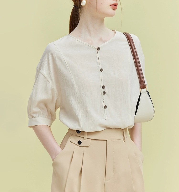 范思蓝恩 法式中袖宽松衬衫女慵懒风夏款气质显瘦上衣