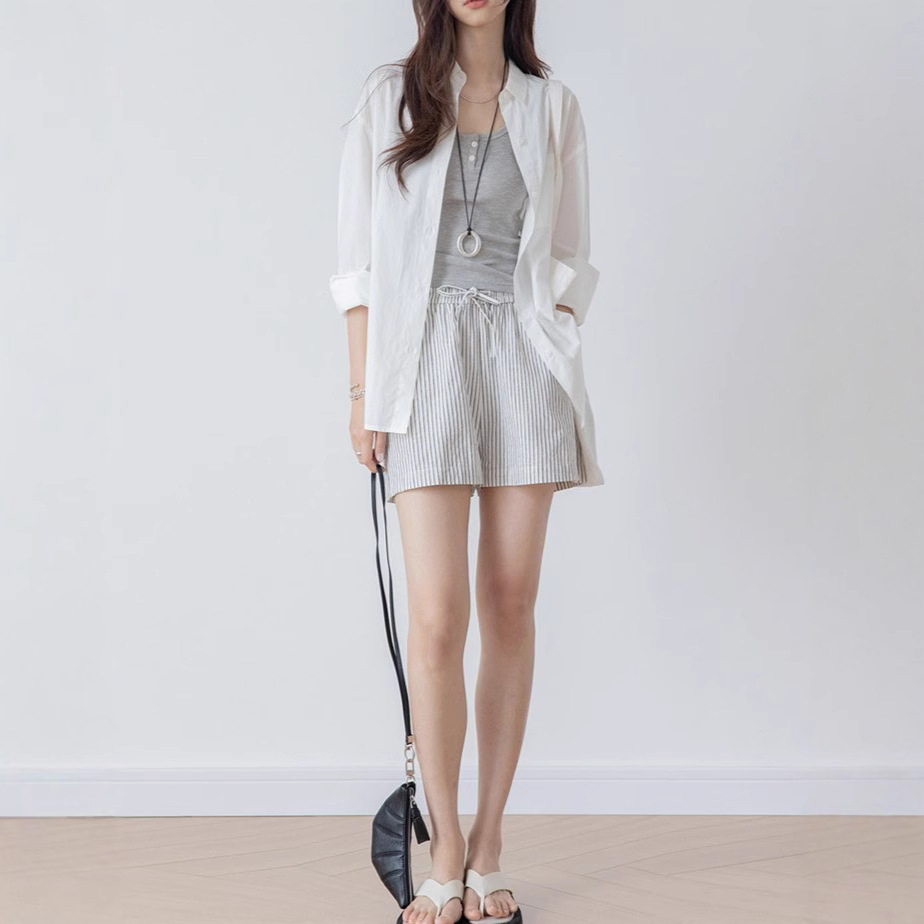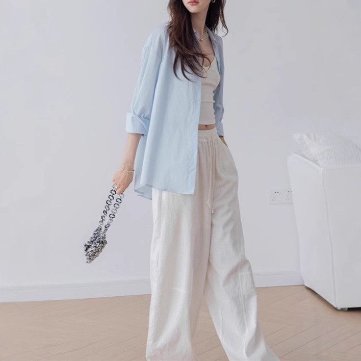 力荐!显瘦春夏白色长袖衬衫女百搭宽松设计感外穿休闲薄款防晒