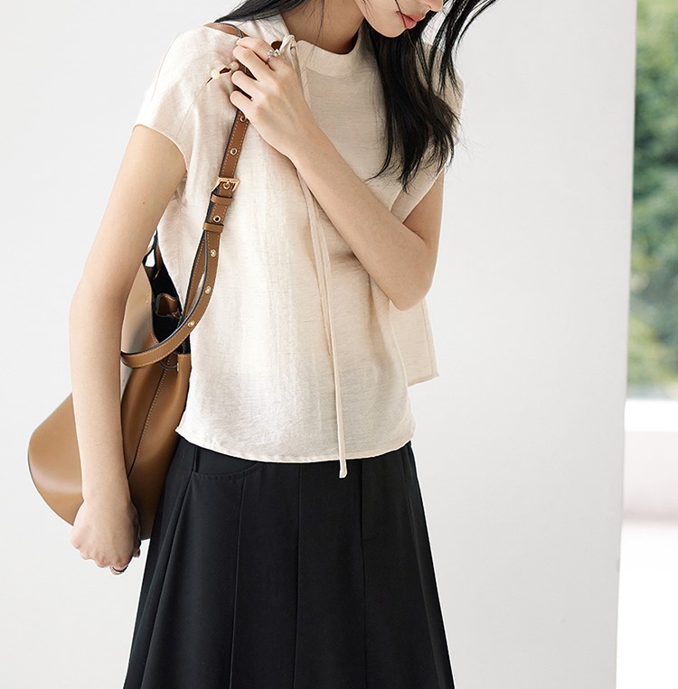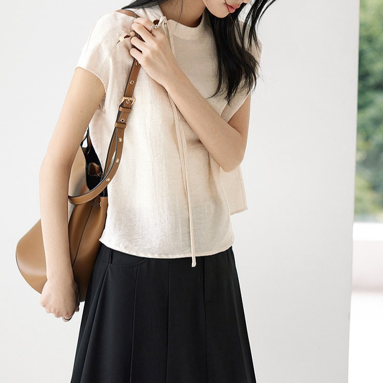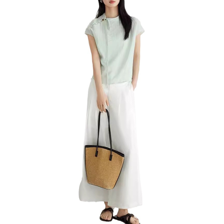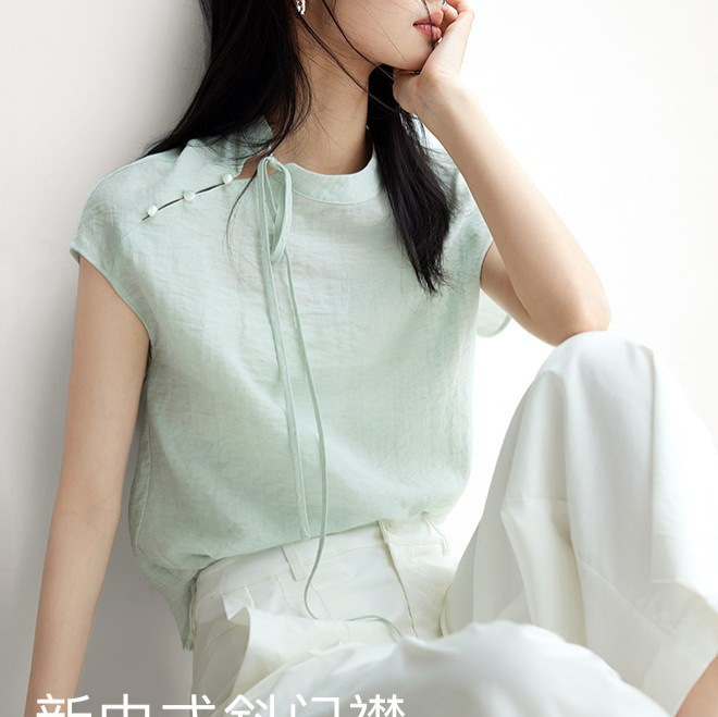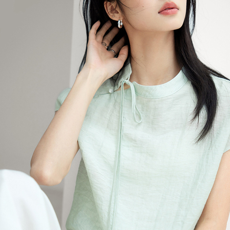纯色新中式亚麻短袖衬衫女夏季新款百搭气质国风小衫