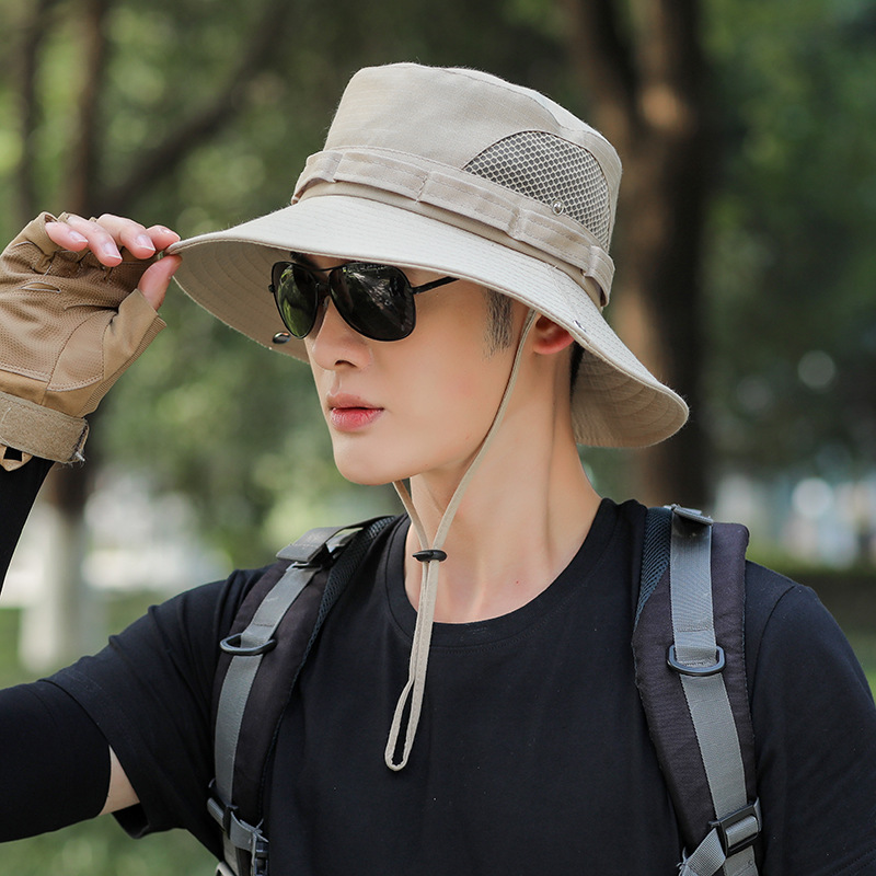 跨境爆款户外遮阳帽登山帽大檐透气帽子男士防晒太阳帽钓鱼渔夫帽