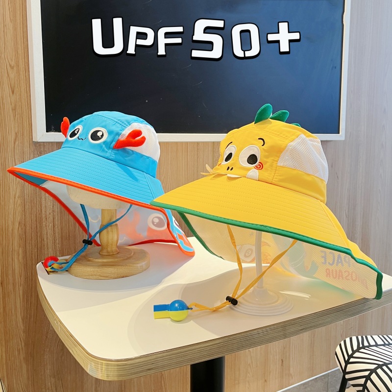 儿童遮阳帽夏天防紫外线宝宝防晒帽洋气恐龙男女童护脖披肩渔夫帽