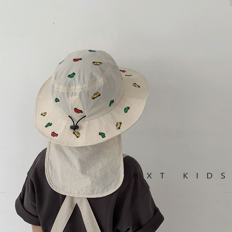 儿童防晒帽夏季薄款小汽车防紫外线披肩帽男女童宝宝夏天遮阳帽潮
