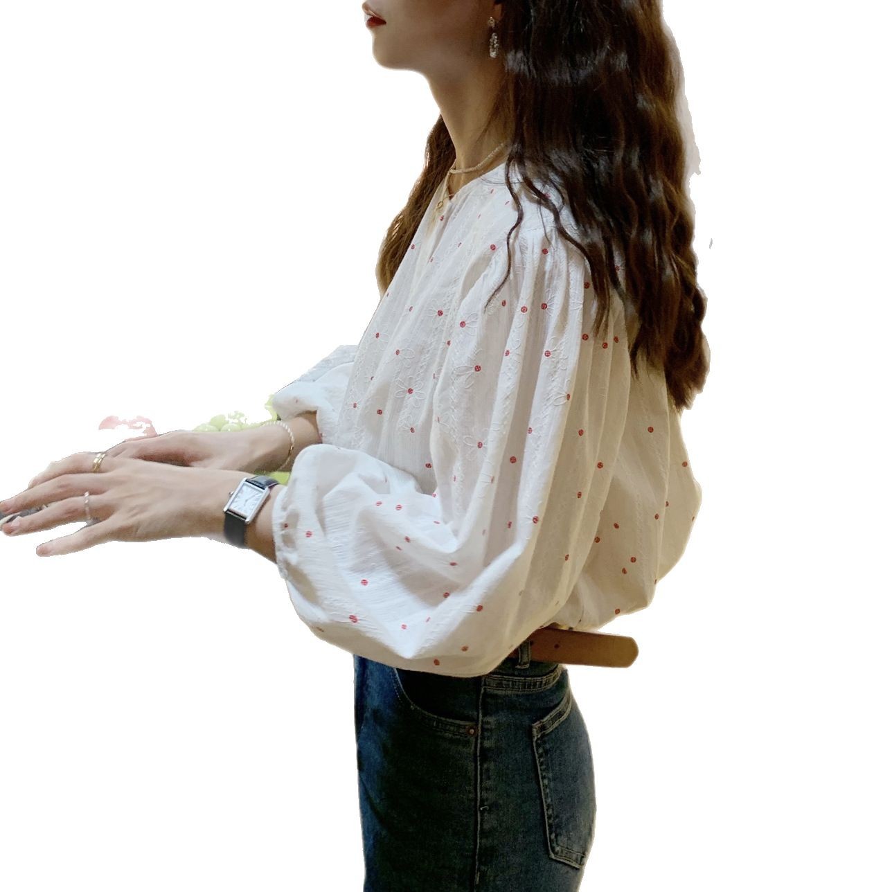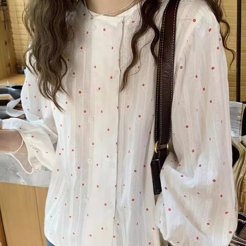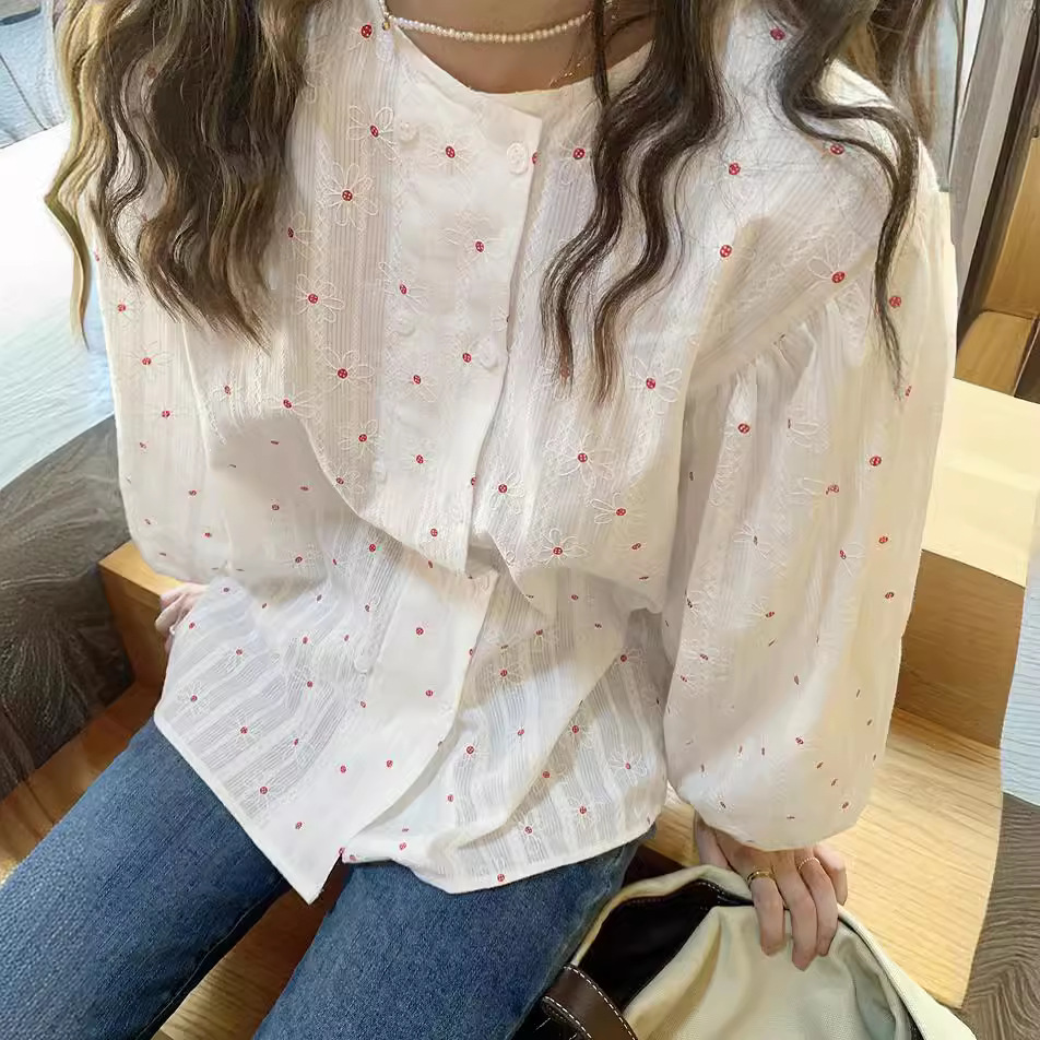 法式复古小花暗纹面料双排扣显瘦白衬衫女夏季新款气质小众上衣