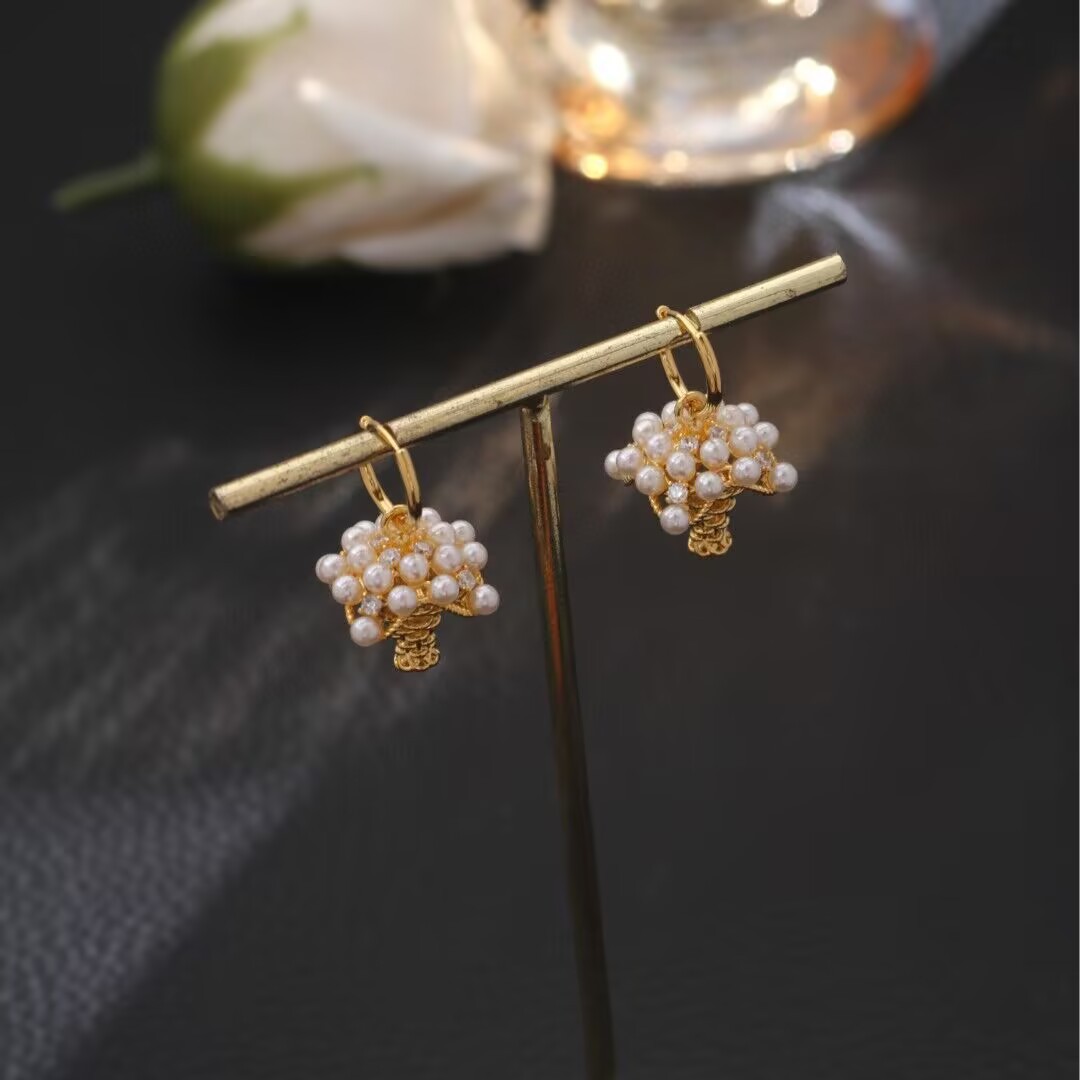韩版新款立体镂空菱形珍珠耳环女时尚独特个性小众设计感气质耳饰