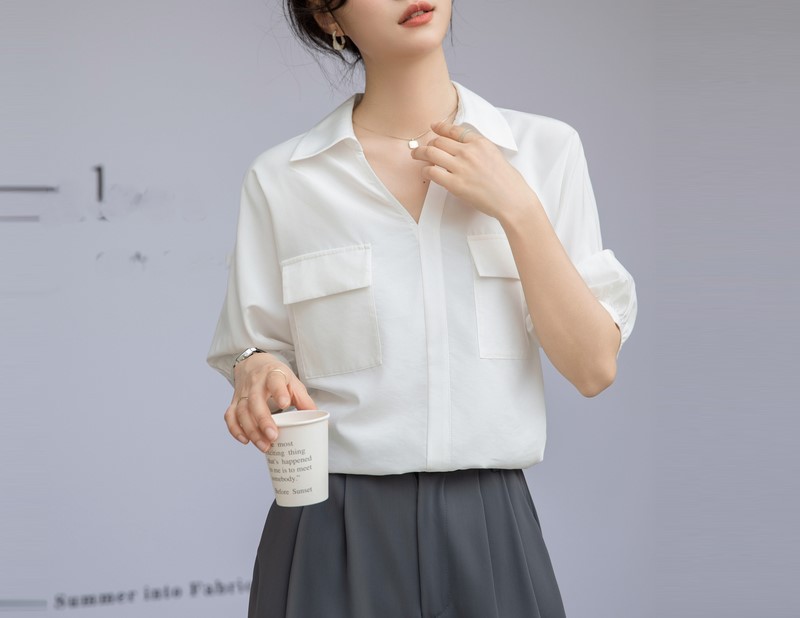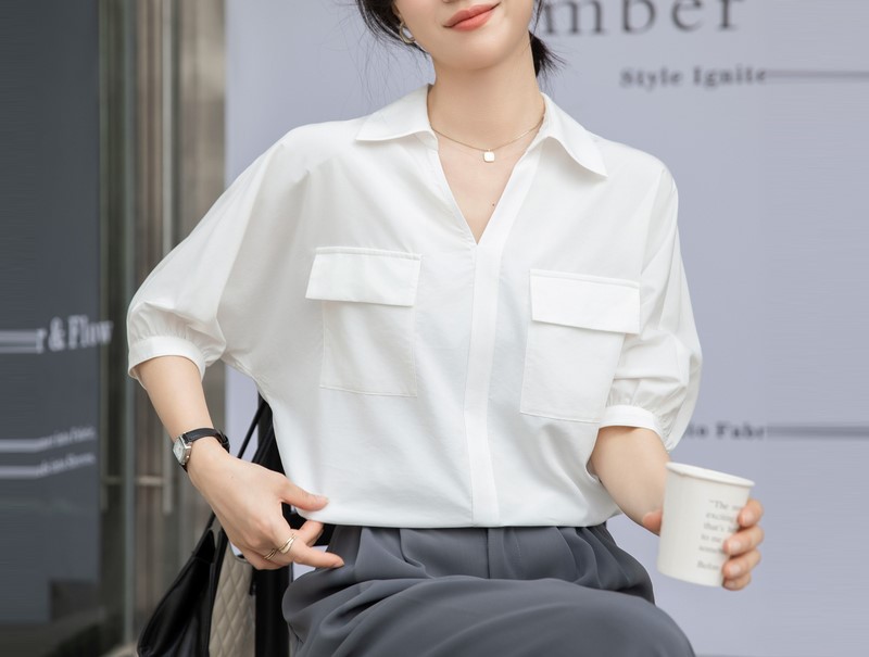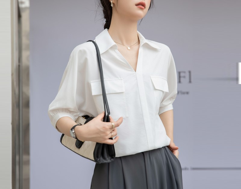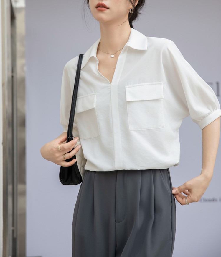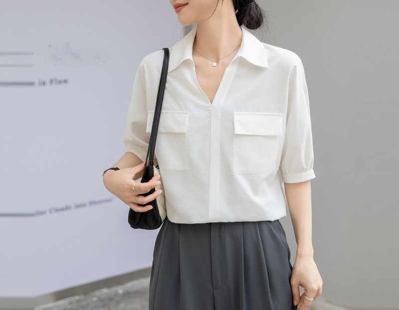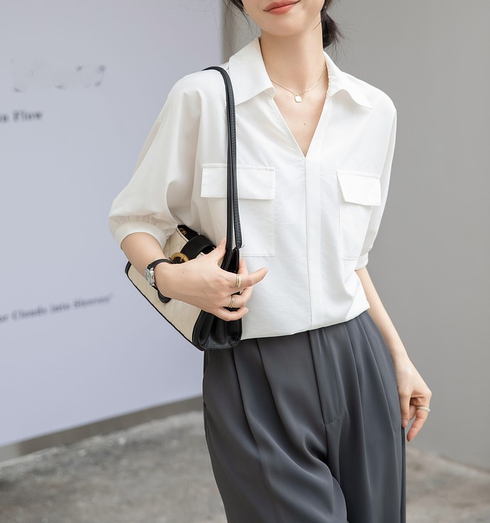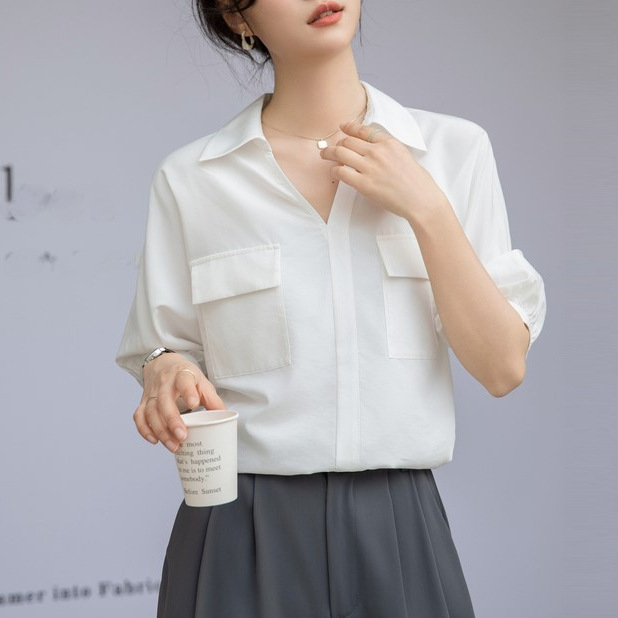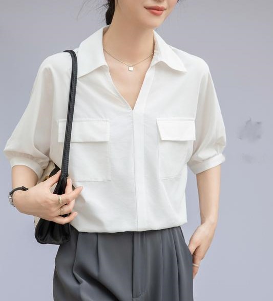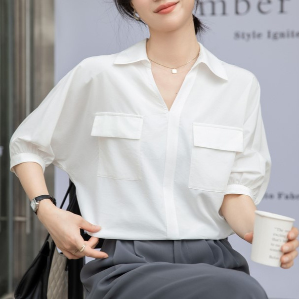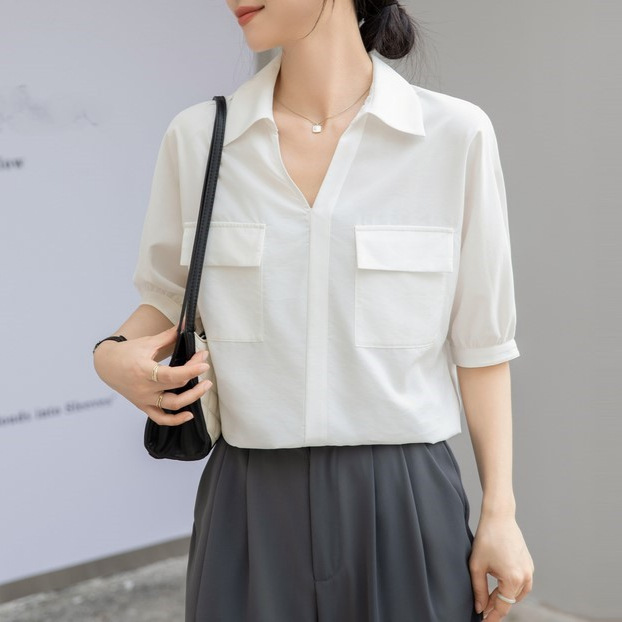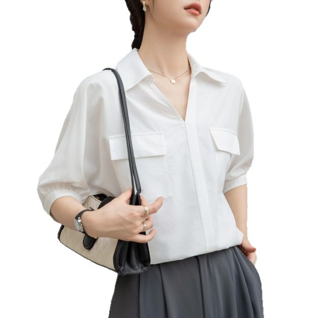 法式白色V领衬衣女夏季新款设计感百搭简约通勤职业短袖衬衫