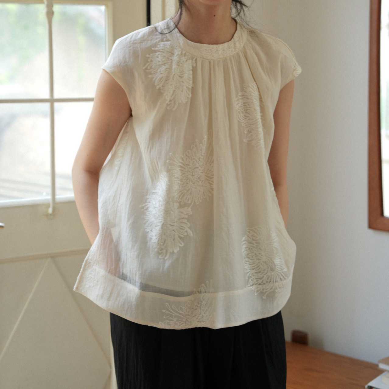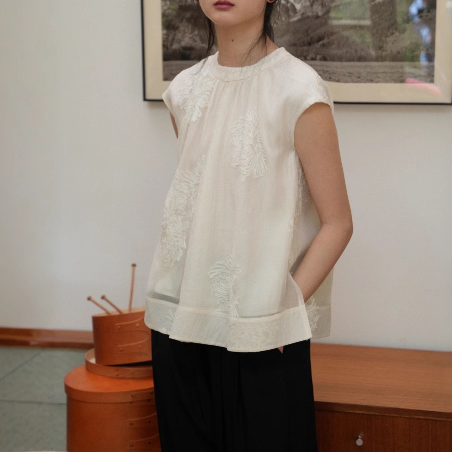 店主推荐~ 新中式国风衬衫淡雅刺绣小衫圆领清凉无袖遮肉显瘦上衣
