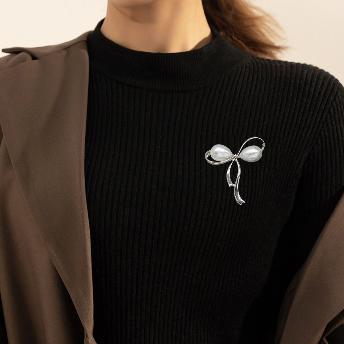 新款蝴蝶结珍珠微镶金属钻石胸针女款街头潮流小众高级感别针配饰