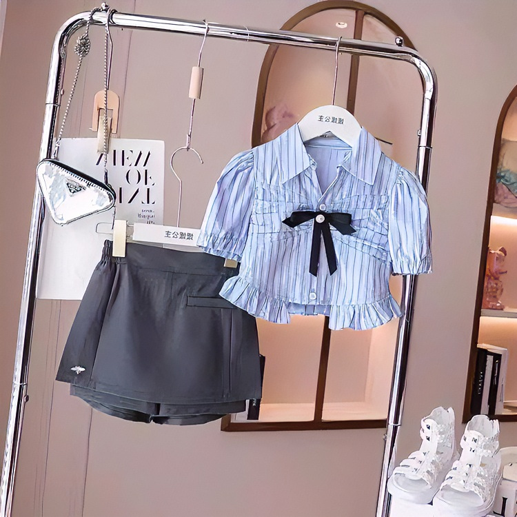 女童套装2025洋气夏季新款女宝宝条纹衬衫时尚半身裙女宝两件套潮