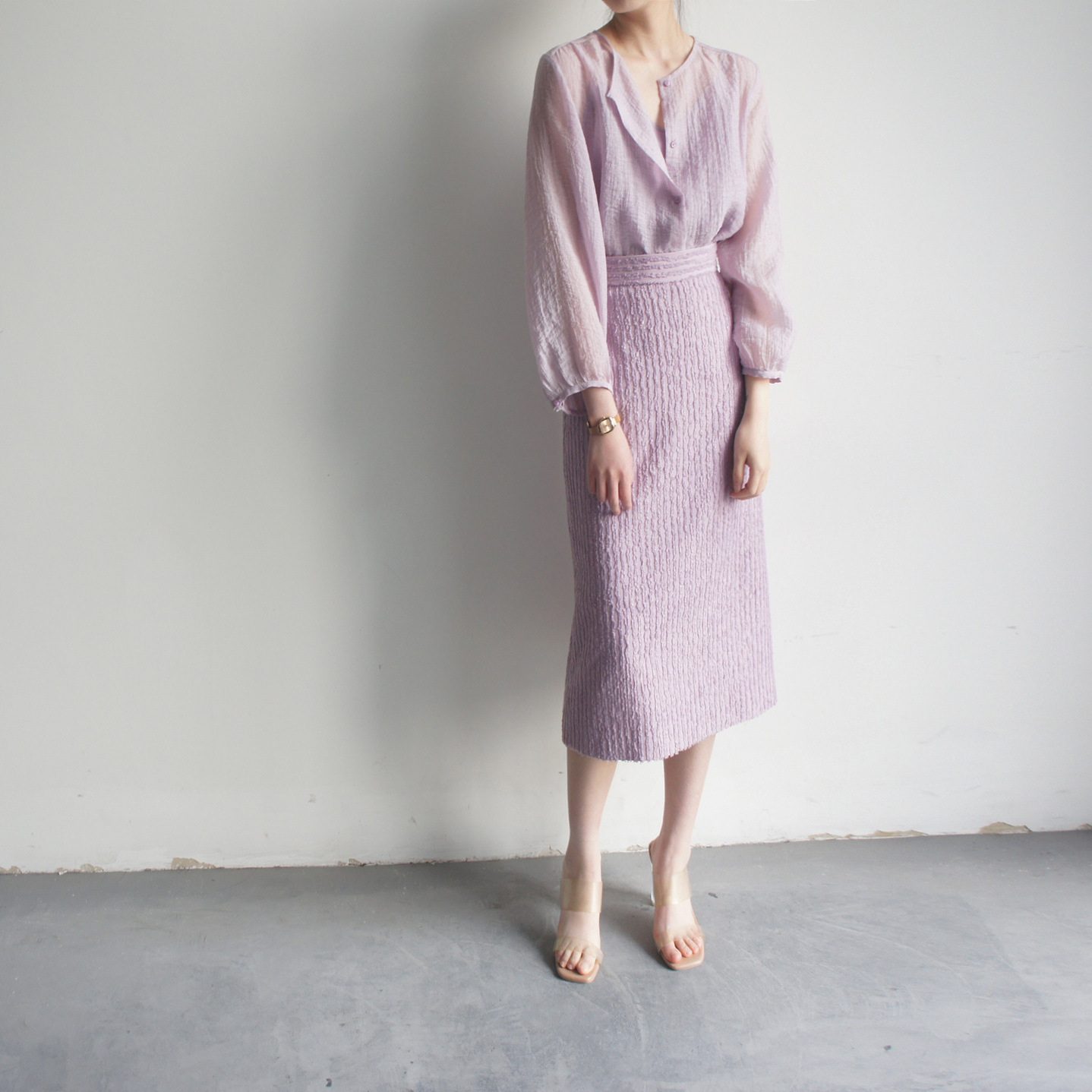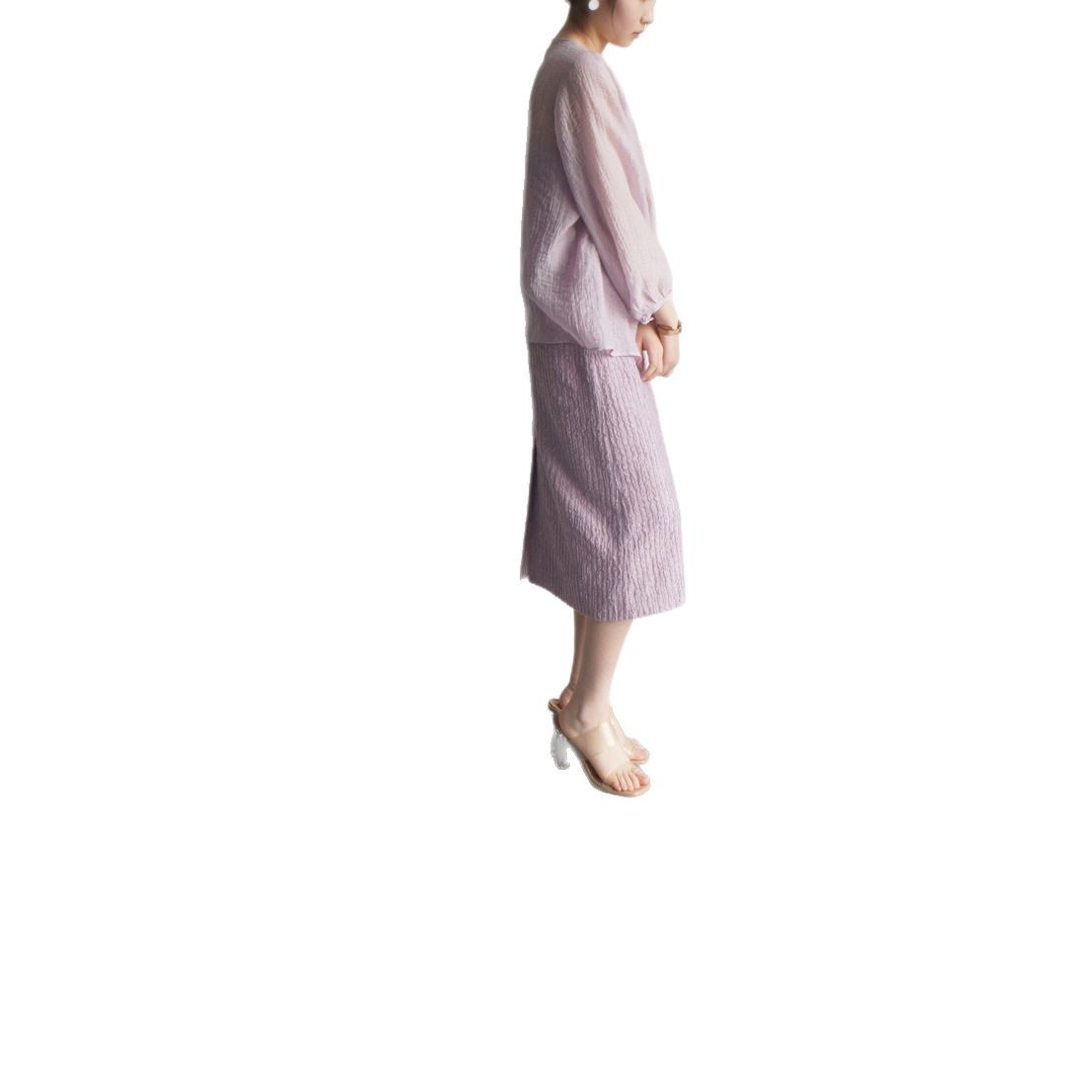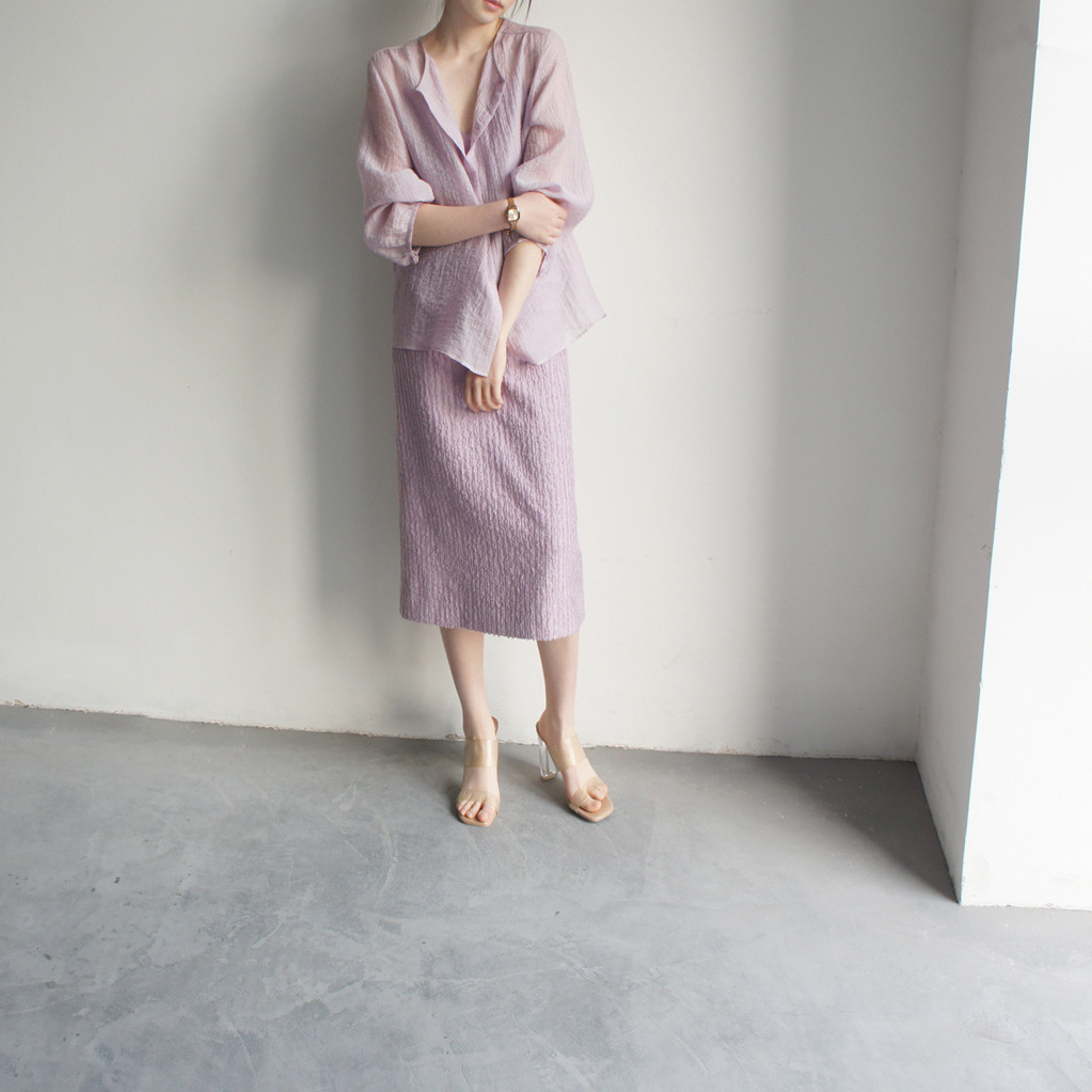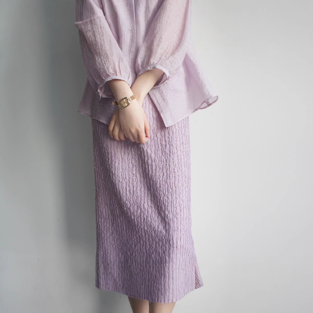 淡紫小圆领透视压褶小衫含吊带法式温柔时髦小众衬衫女25ss