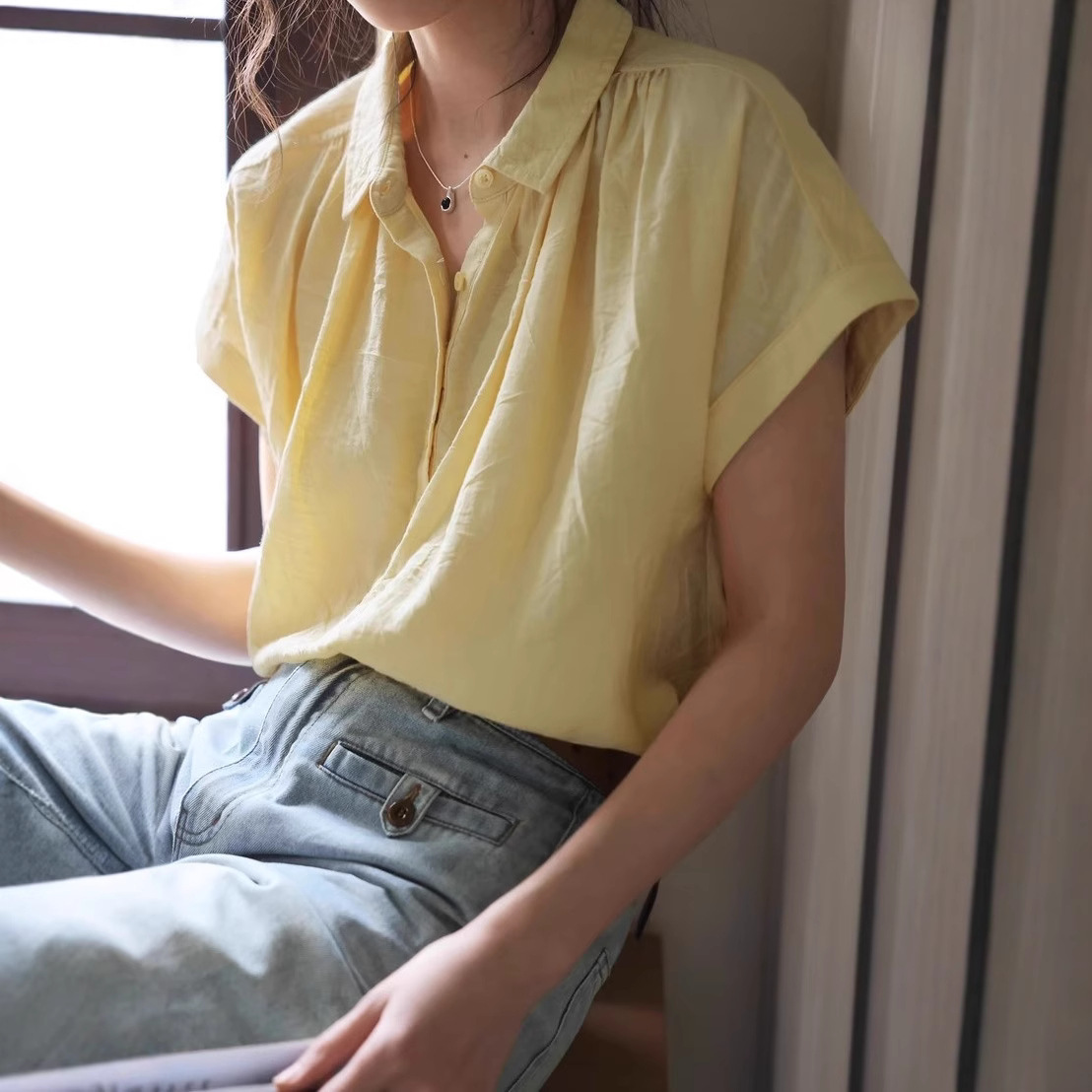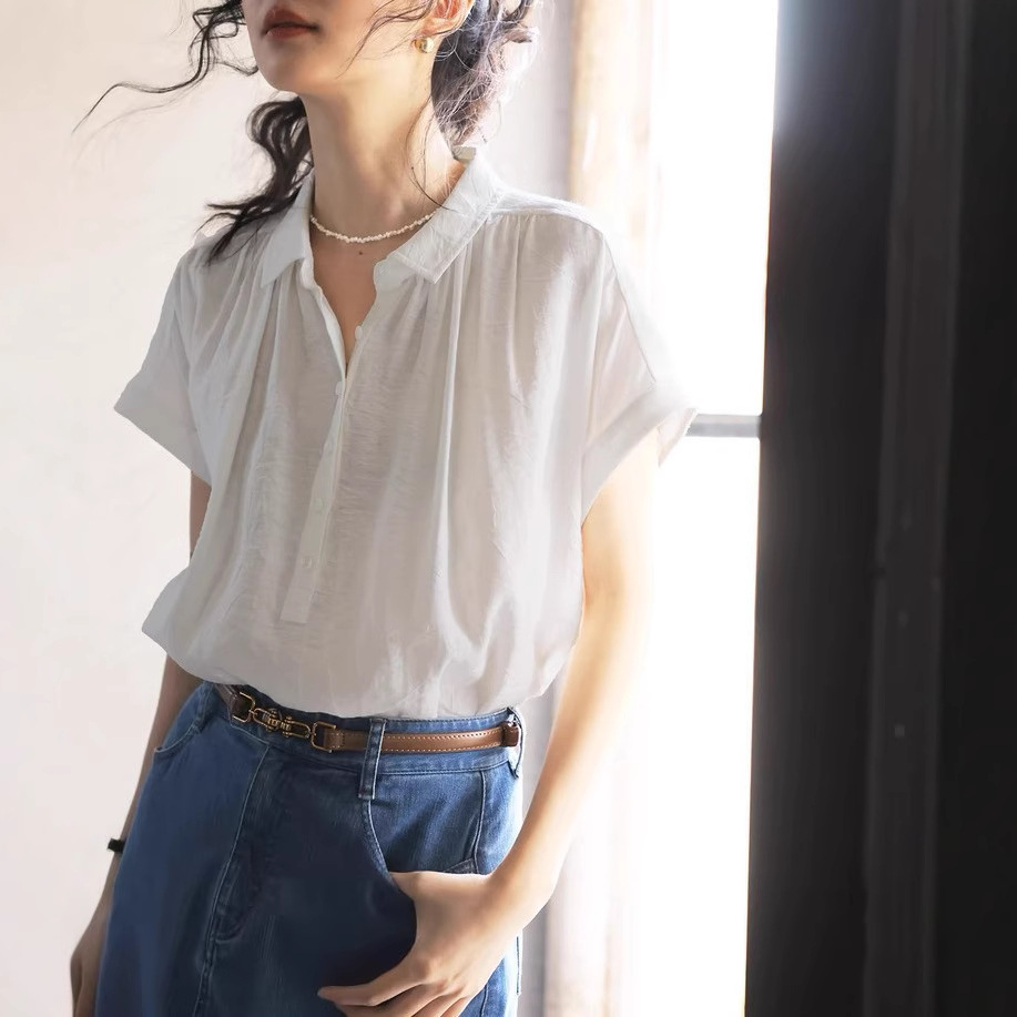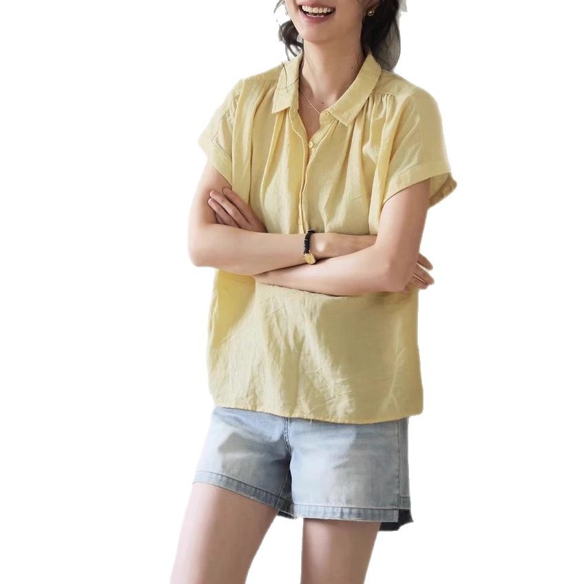 solihgter法式复古亚麻微透连袖衬衫女夏季2025新款宽松显瘦衬衣