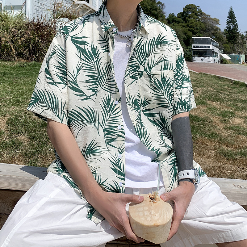 同款短袖衬衫男夏季薄款花寸衣夏威夷沙滩衬衣宽松vintage半袖外