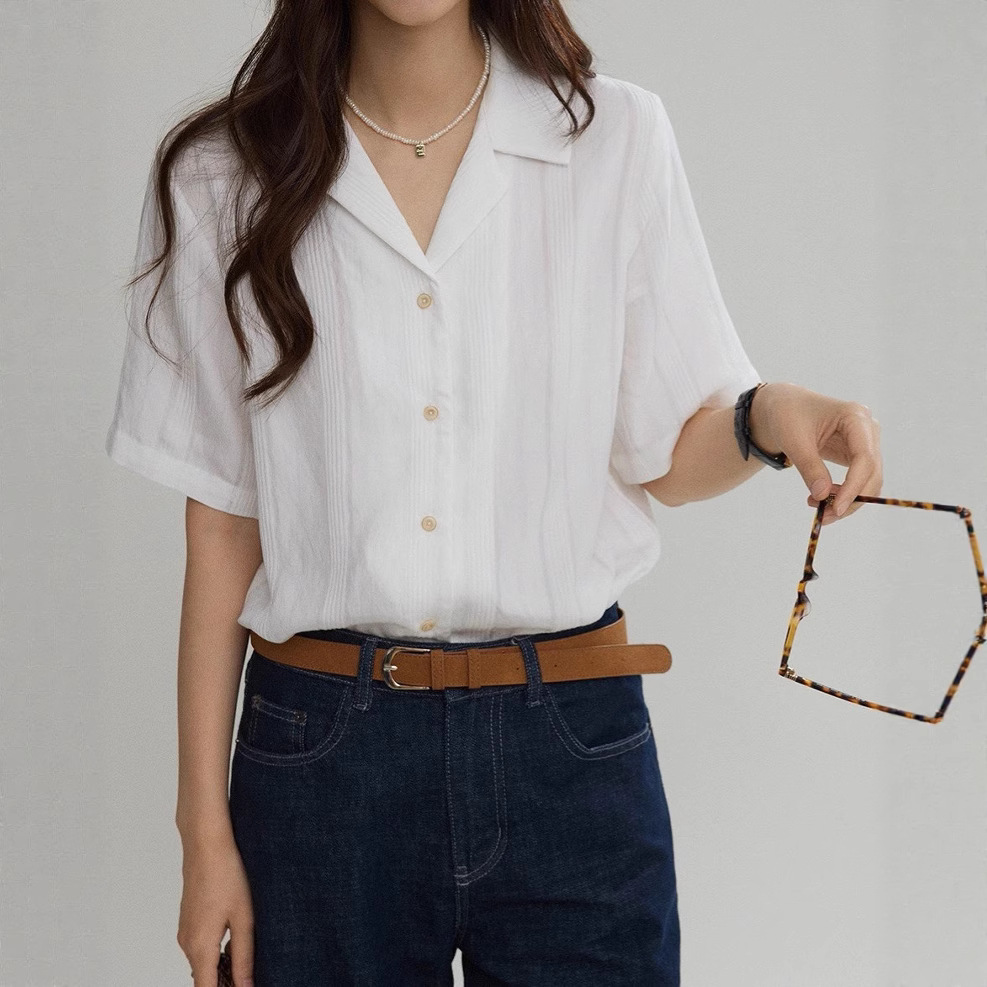 古巴领规则百搭轻薄衬衫女夏季法式简约宽松休闲衬衣新款