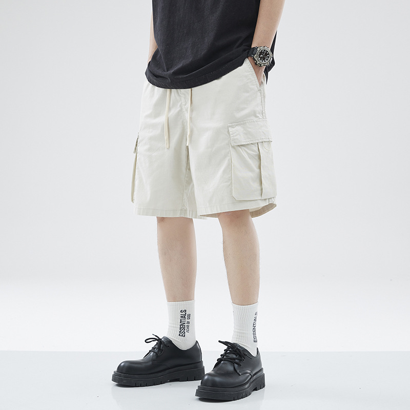 潮牌多口袋工装短裤男士夏季宽松直筒五分裤休闲简约百搭白色中裤