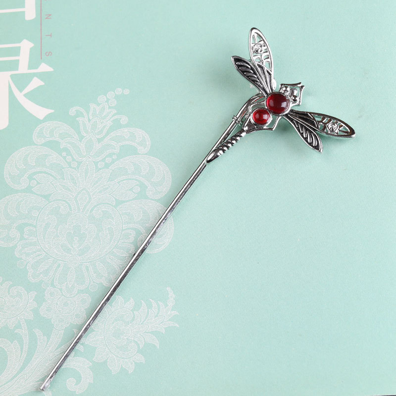 纯银蝴蝶古风足银发簪汉服配饰发钗蜻蜓原创手工头饰簪子流苏