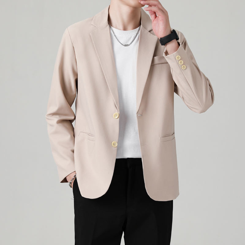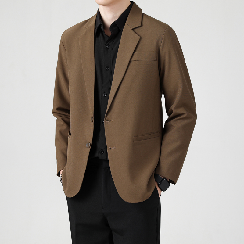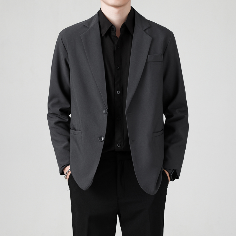 韩系黑色抗皱垂感西装外套男士春秋季商务百搭休闲痞帅小西服上衣