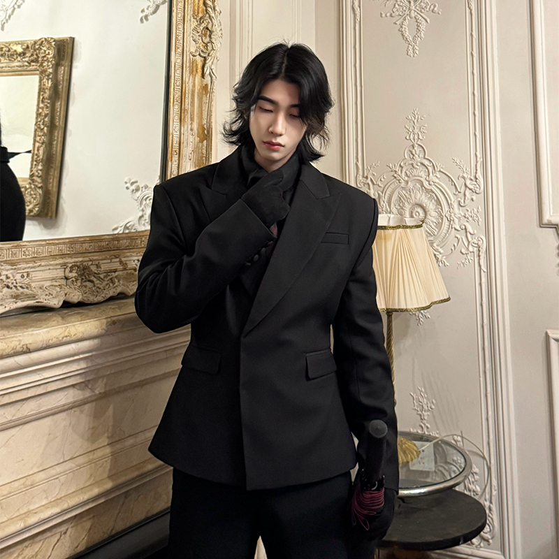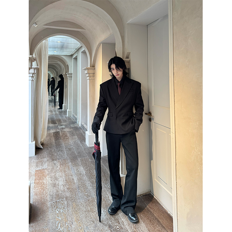 高级感红内收腰西装外套双排扣垫肩礼服西服