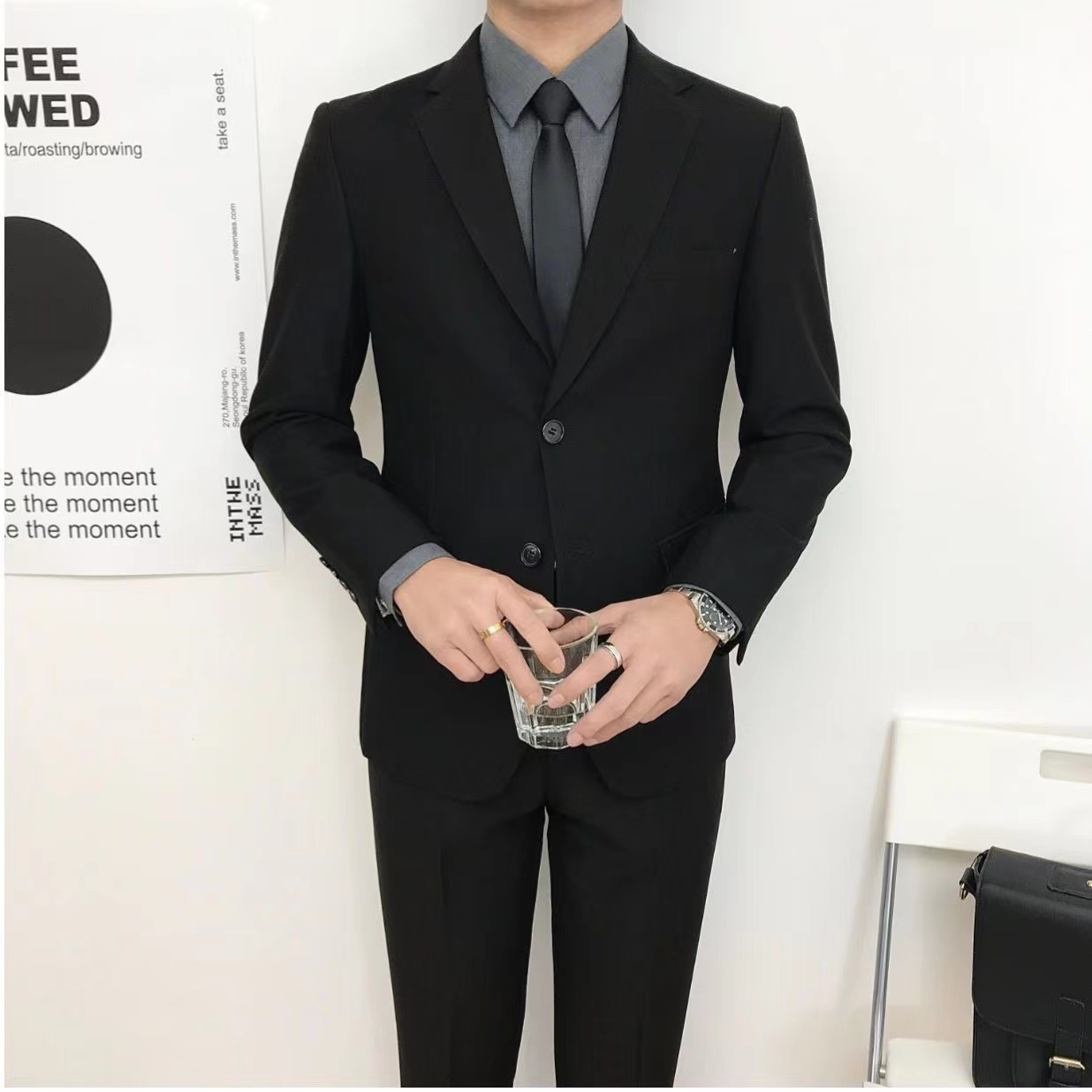 - W09(4件装) 黑色外套+西裤+白衬衫+送领带