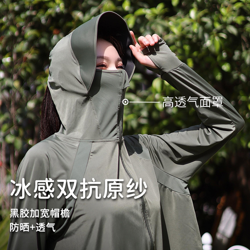 夏季新款防紫外线长袖连帽可拆卸帽檐冰丝防晒衣女外套骑车防晒服