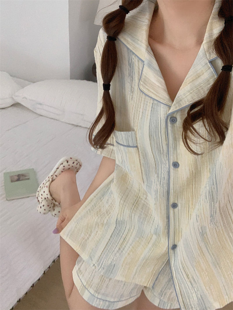 日系简约ins高级睡衣女夏季新款网红少女短袖短裤家居服两件套装