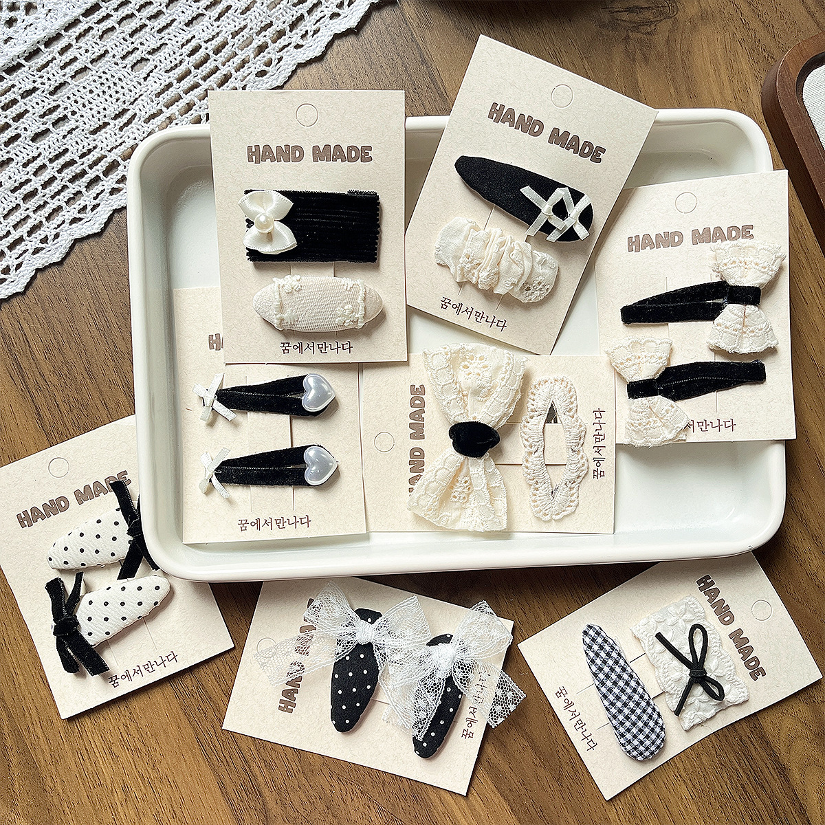 韩版黑色布艺发夹简约复古气质少女发夹刺绣格子发饰对装