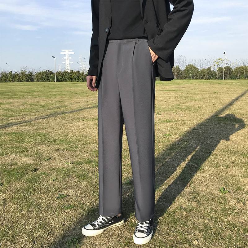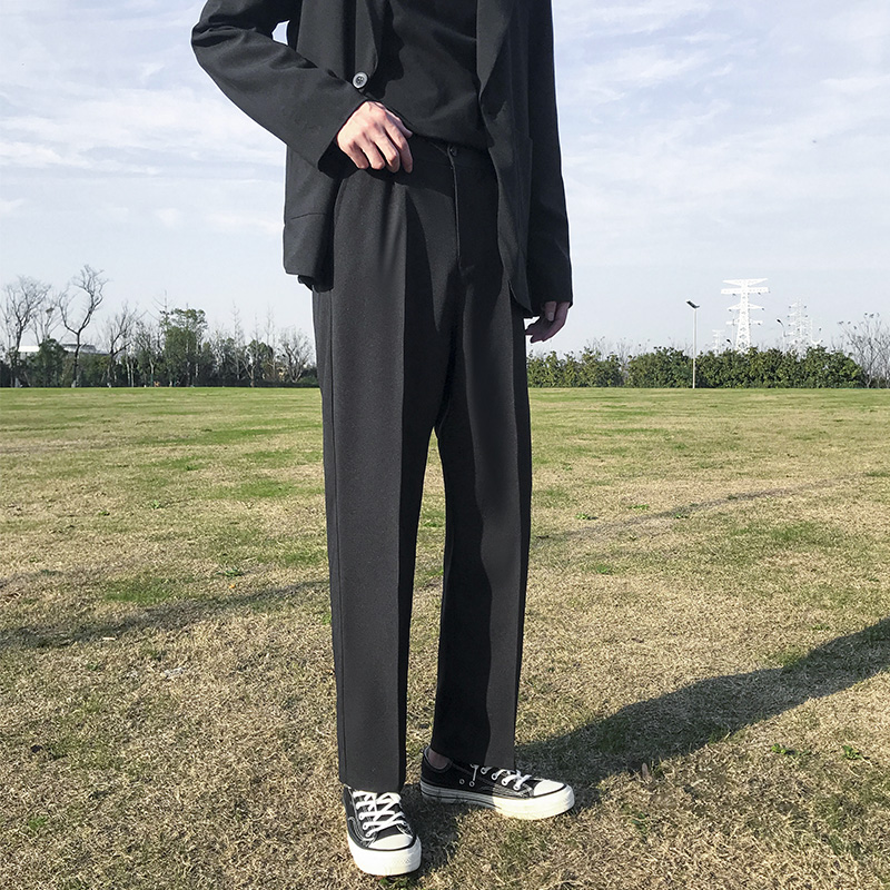 秋季西裤男直筒宽松坠垂感九分西装裤子男士潮流阔腿休闲长裤