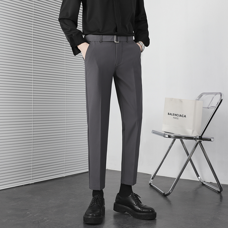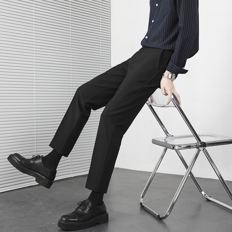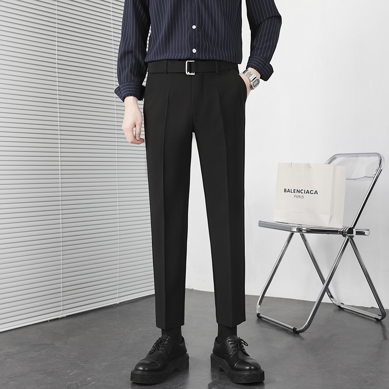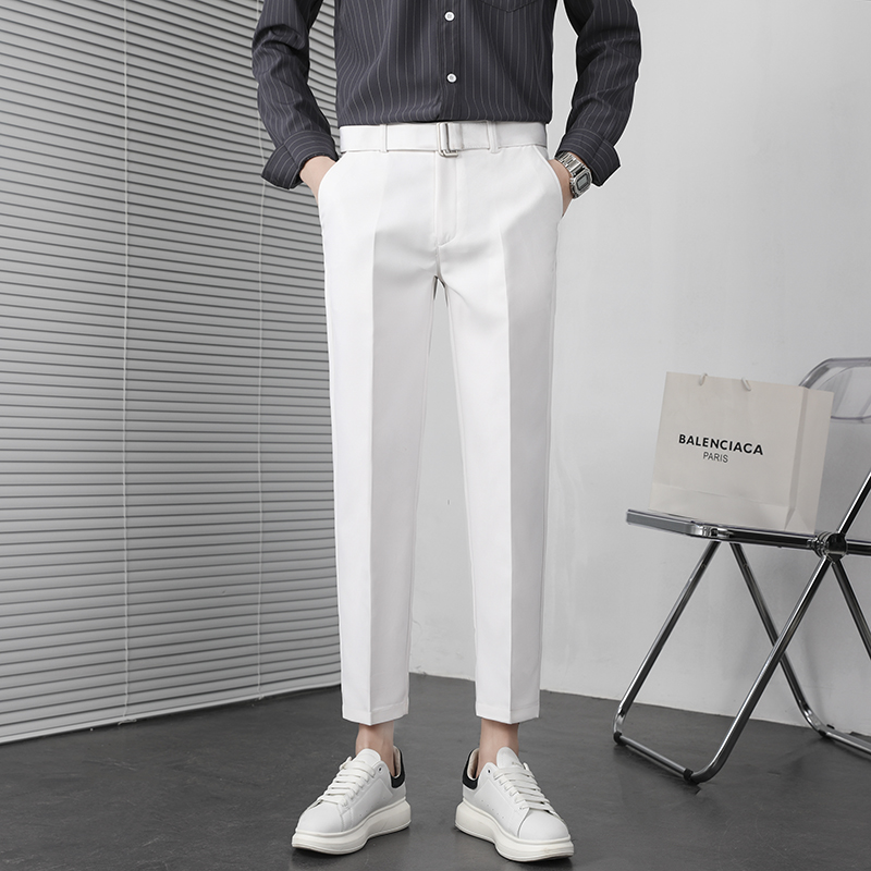 白色西裤男直筒垂感九分男生小西裤春季休闲潮流修身小脚西装裤男