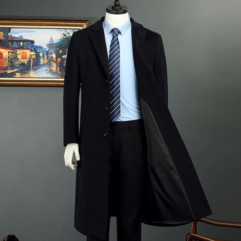 男士大衣男长款中年过膝西装领韩版秋冬季风衣呢子高端品牌外套