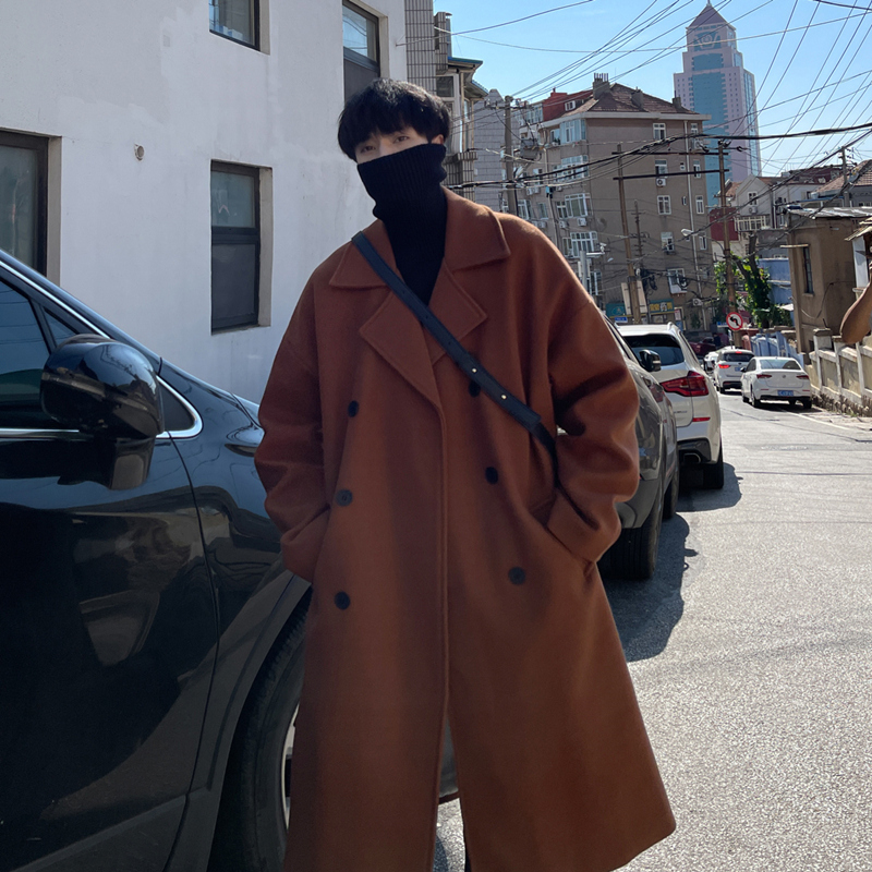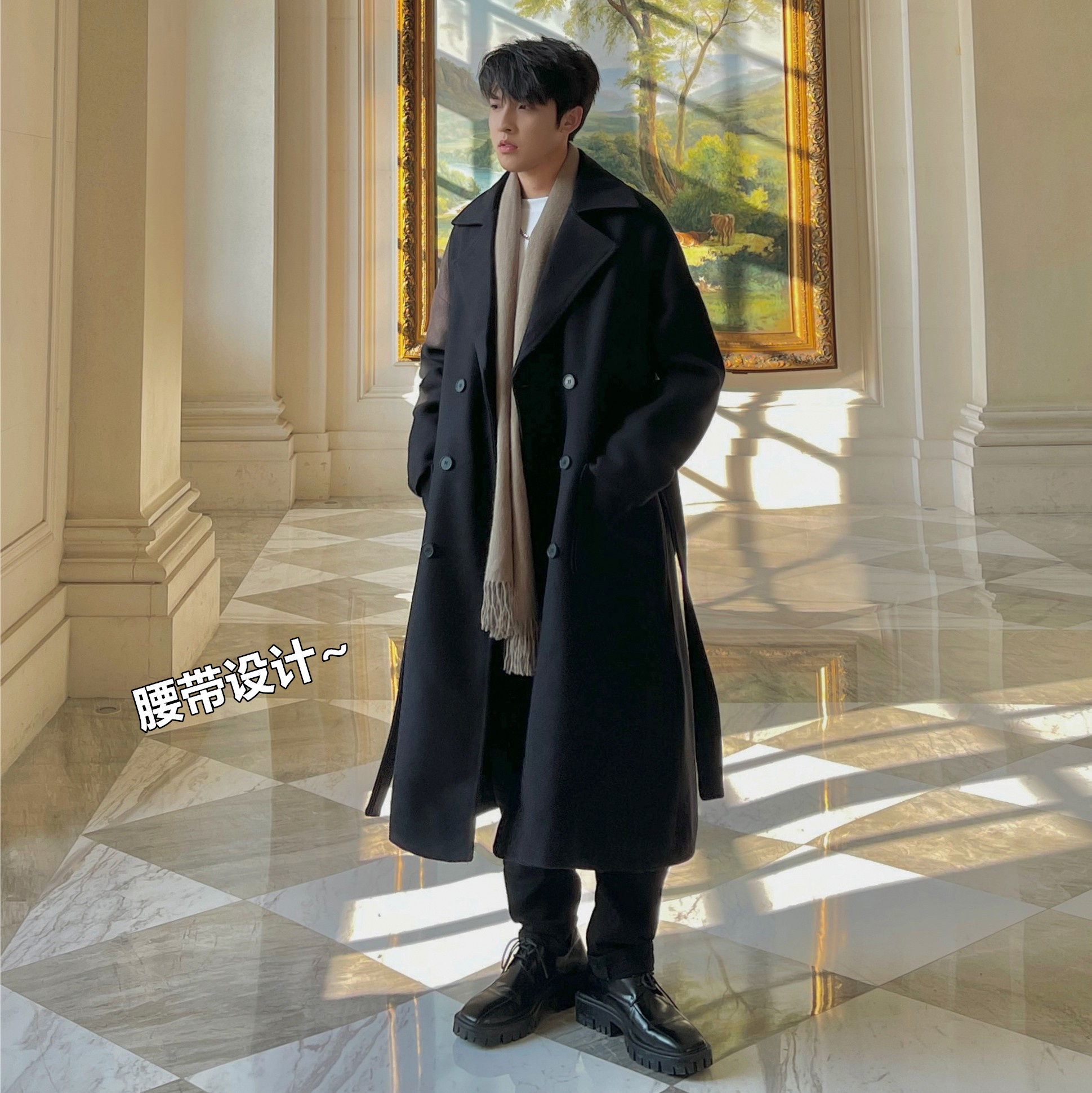 冬季毛呢大衣男中长款过膝西装领双排扣呢子风衣外套加厚